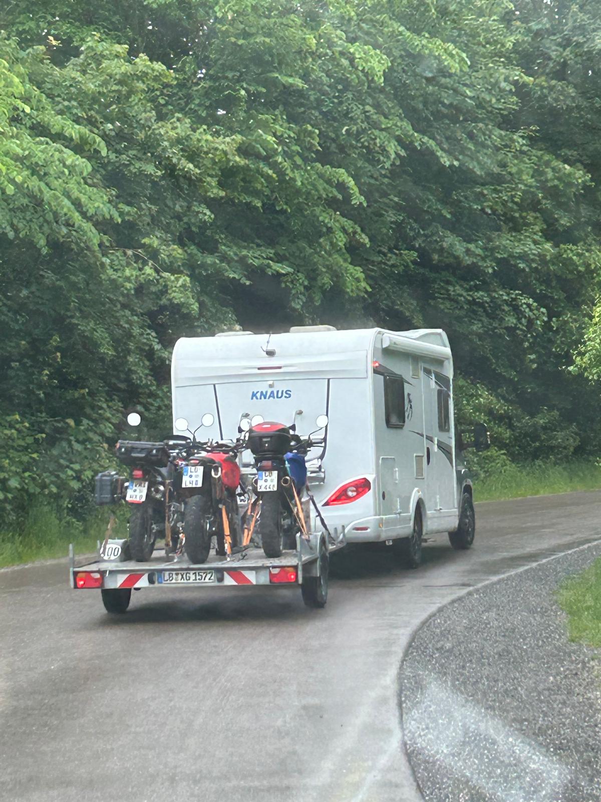 Die Regenmenge, die ich abbekommen habe, war überschaubar. Ich hatte zu keiner Zeit die Regenkombi an. Nur die Domi sieht jetzt aus, als hätte sie ein Endurotraining hinter sich.