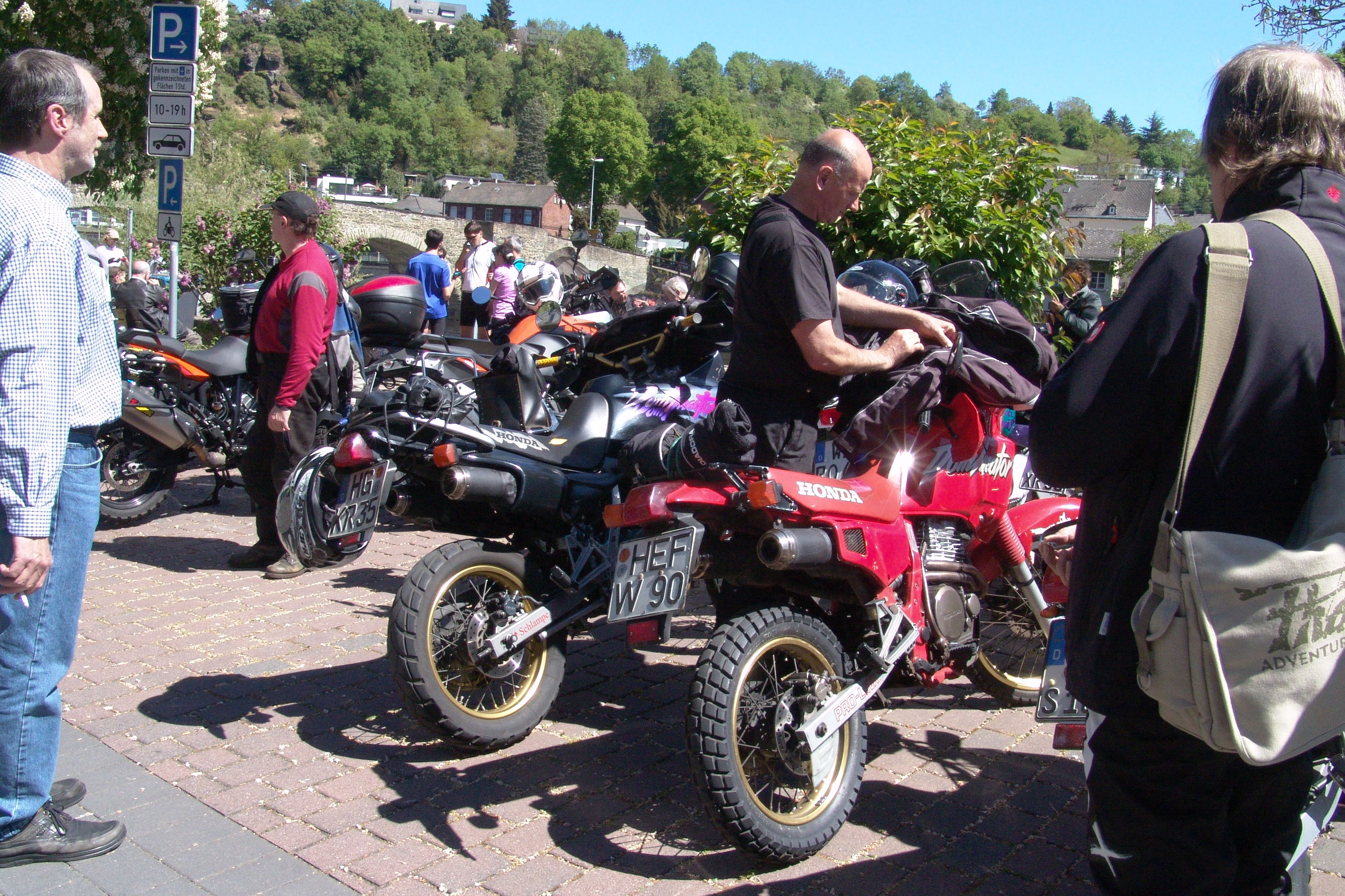 Plötzlich taucht wie aus dem Nichts ein orangegraues Schwermetall auf und der Überraschungsgast des Tages kam um die Ecke - Nickless. Als dann Willi aus Bad Hersfeld eingetroffen war ging es dann über die Ortschaften an Bad Homburg vorbei zum Sandplacken, wo wir Peter aufsammelten.