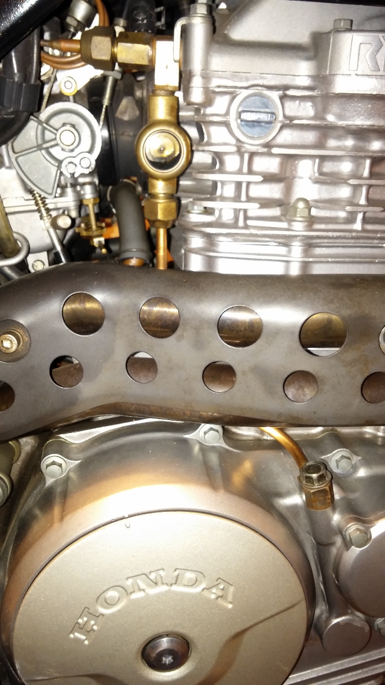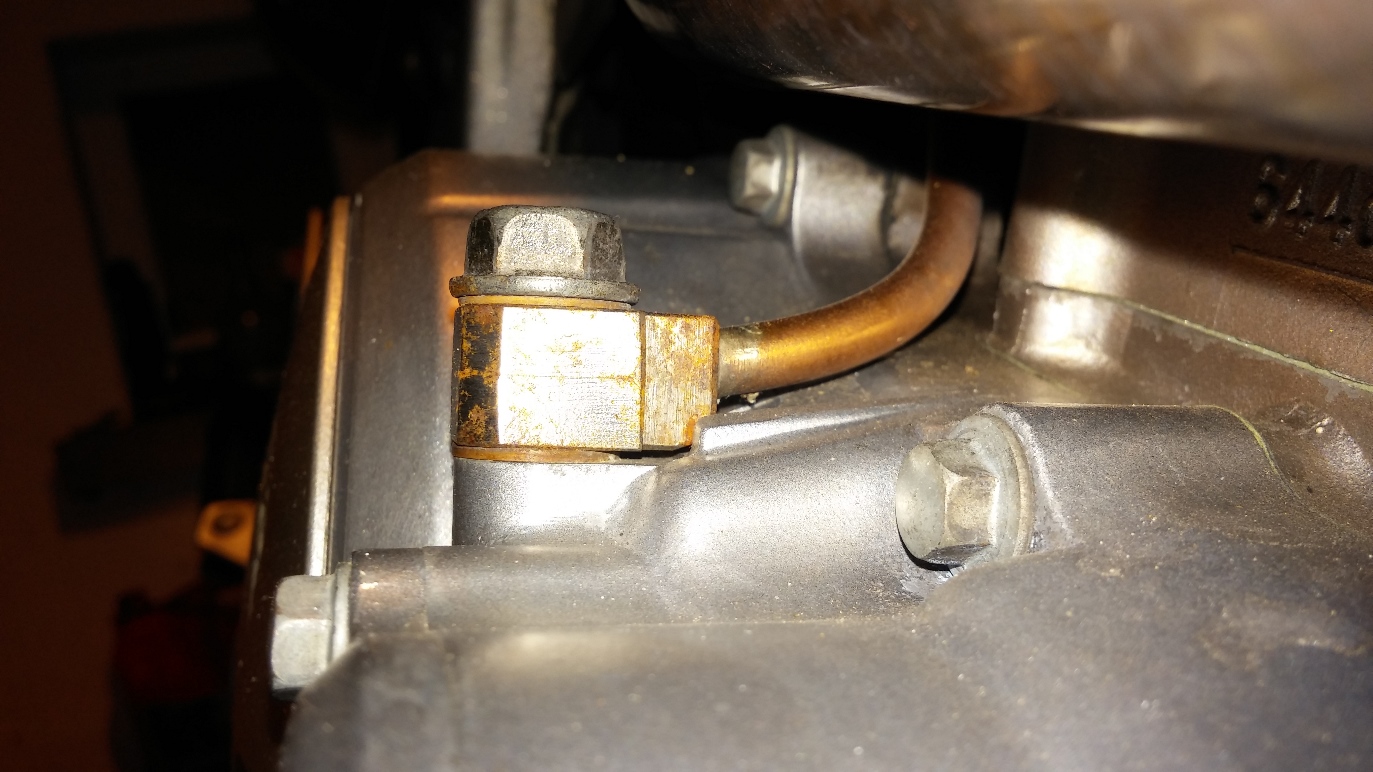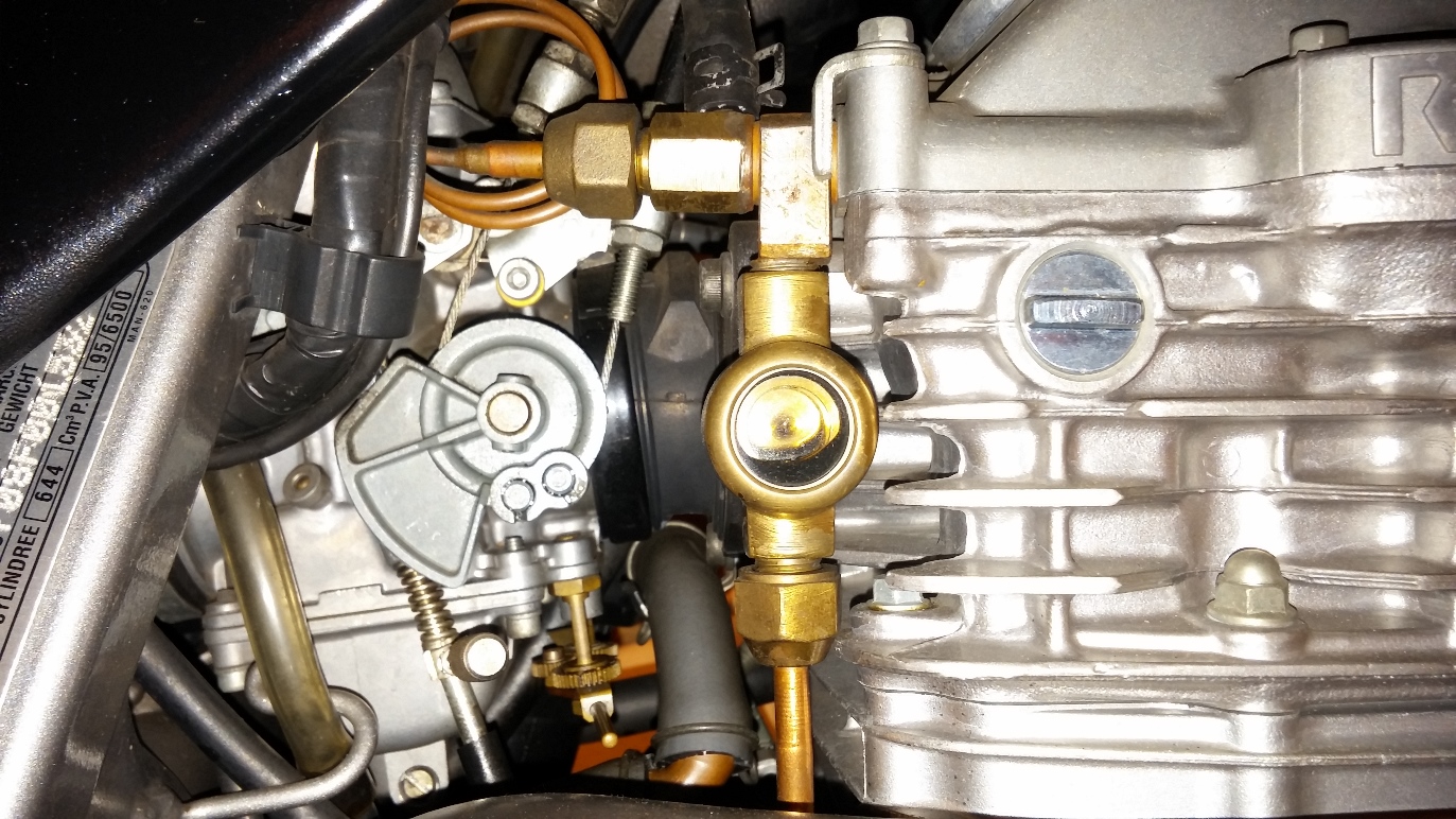 Zur Kontrolle des Öldrucks habe ich mir so einen Druckschalter an den unteren Anschluß der Steigleitung angebaut.