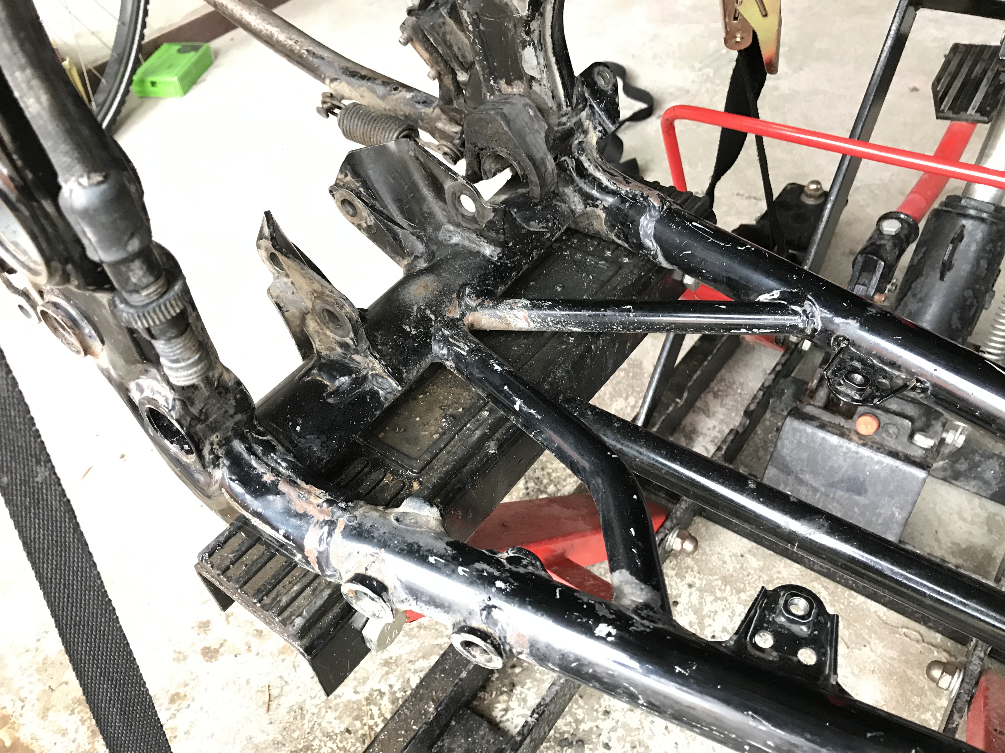 Wenn ich mir deinen Rahmen so anschaue ist der genauso zerschunden wie meiner , mindestens untenrum .Dann meistens in Ecken die man dann zeitaufwendig ausschleifen muss .Da lass ich meinen (nächsten Winter)lieber für ca.50 € Sandstrahlen, alles ist 100% sauber und rostfrei .Ob mans dann lackiert oder sonstwie beschichten lässt ist ne andere Frage.Wenn das so gut geht mit 2K lack ,wie SB3 sagt , würd mir das auch genügen.(Nur weil die eh wieder im Gelände gefahren wird , lass ich die ja nicht vergammeln.Dann bräucht ich se auch net buzze :mrgreen: )