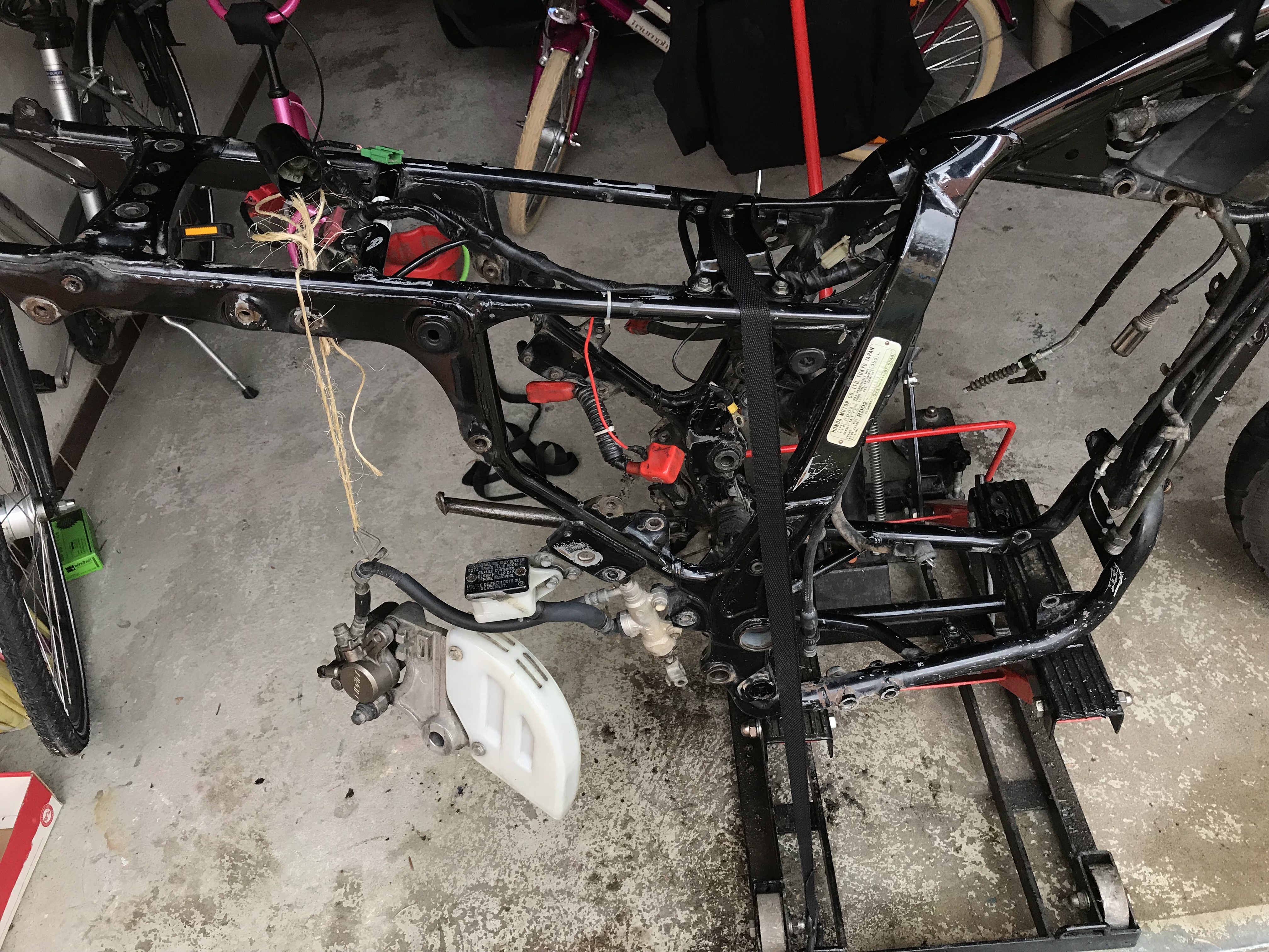 Ich habe alle Plastikteile bis auf die Teile über dem Auspuff abgebaut.