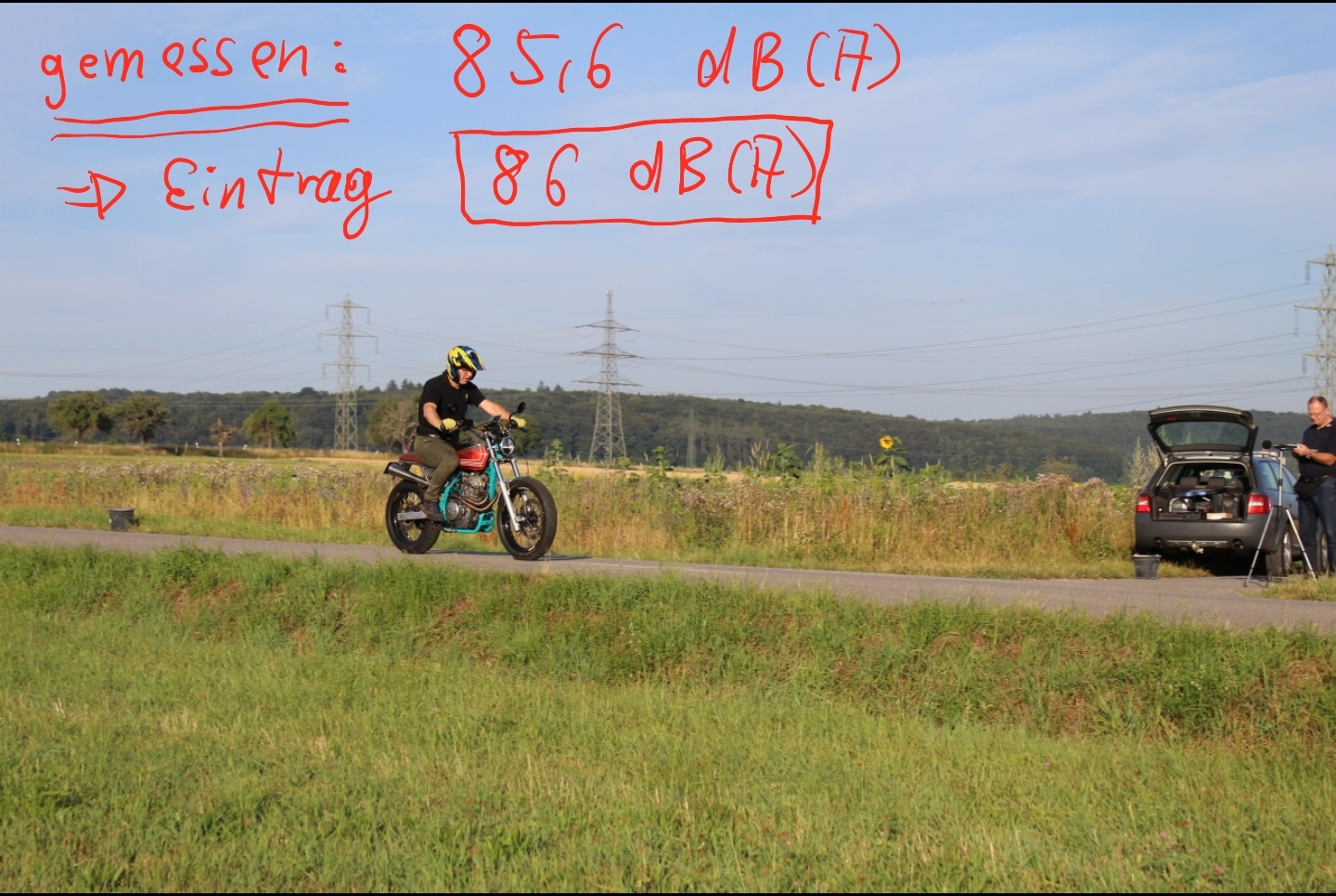 Die haben ein Limit bzgl. der neuen Fahrverbote von "ueber 95db (A)" fuers Standgeraeusch, aber auch diesen Wert habe ich (neben den maximal erlaubten 86dB(A) fuers Fahrgeraeusch) EXAKT erreicht