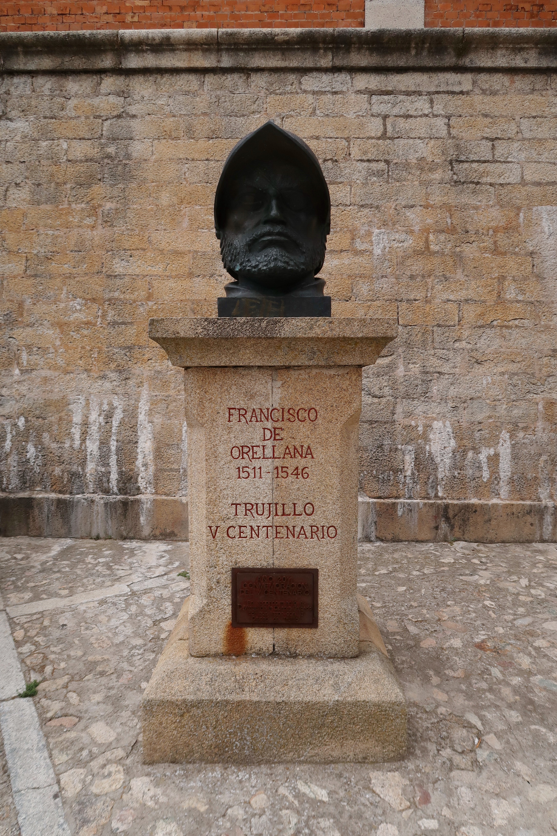Ich marschiere weiter durch die mittelalterlichen Gassen, passiere Denkmäler, darunter dasjenige des Eroberers Francisco de Orellana (https://de.wikipedia.org/wiki/Francisco_de_Orellana). Der einäugige Bursche sieht finster aus.