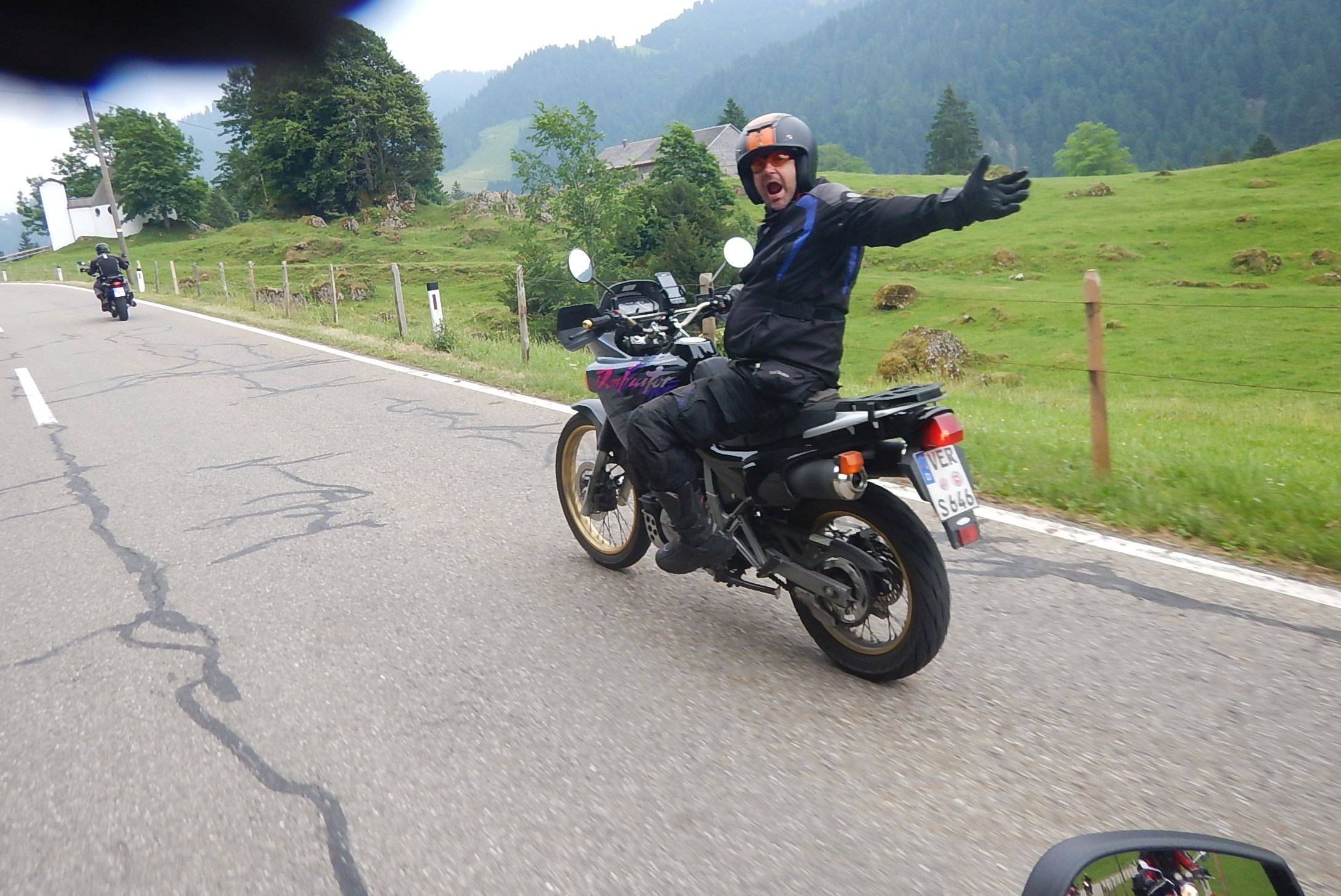 Ich habe mich hinter Hogi und Biggi gehängt. Die hatten ein Navi mit "Kurvenreiche Strecke" und "Regenfreie Fahrt" als Optionen.