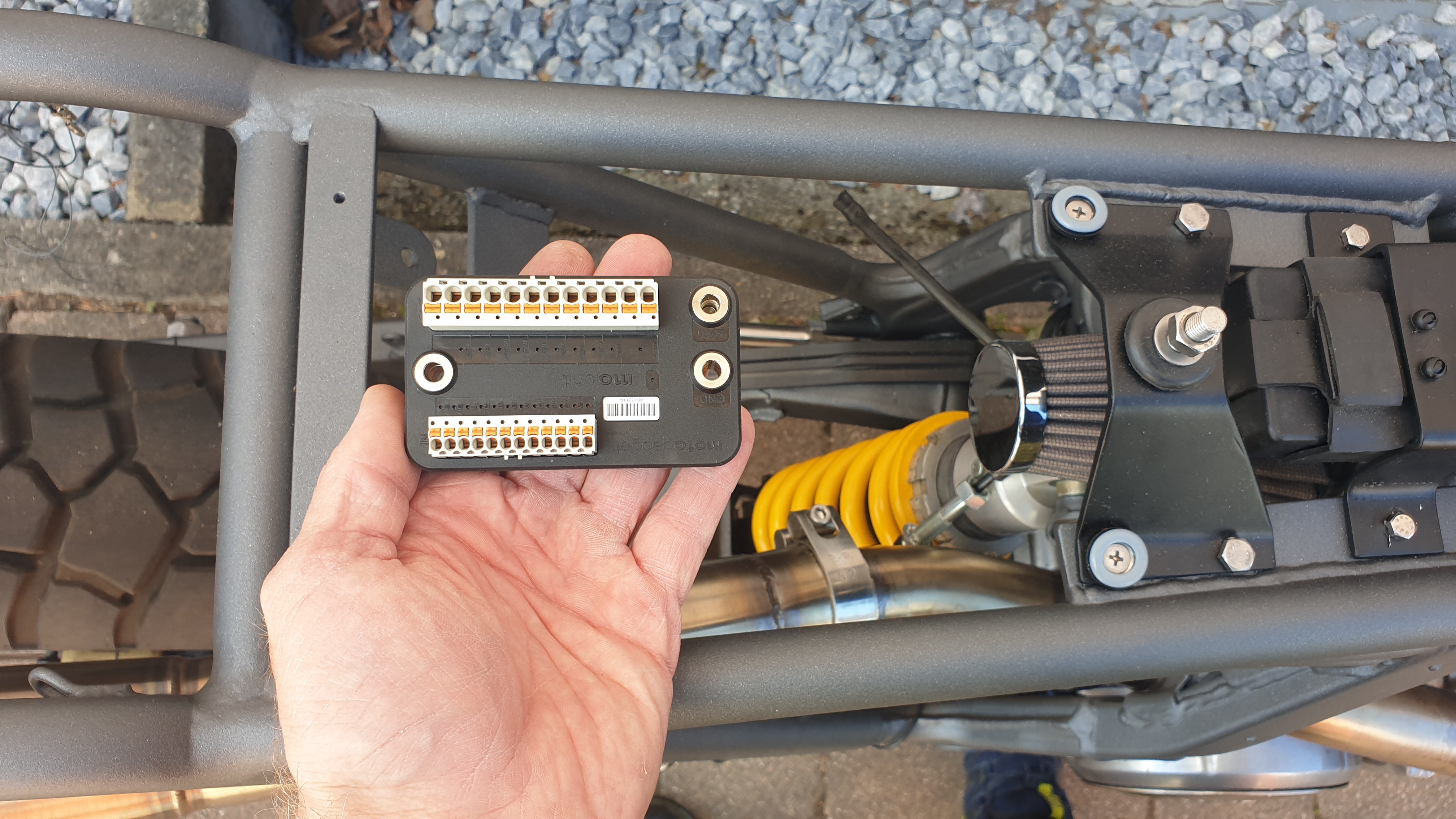 ... Elektrik funktioniert mit dem Motogadget mo.unit blue - Steuergerät und geändertem Schaltplan.... und der Motor scheint auch ganz gut zu laufen.... so wie geplant. Nun nur noch die Kabel schoen aufräumen, mit Aderendhuelsen versehen und dann noch n paar kleinere Baustellen