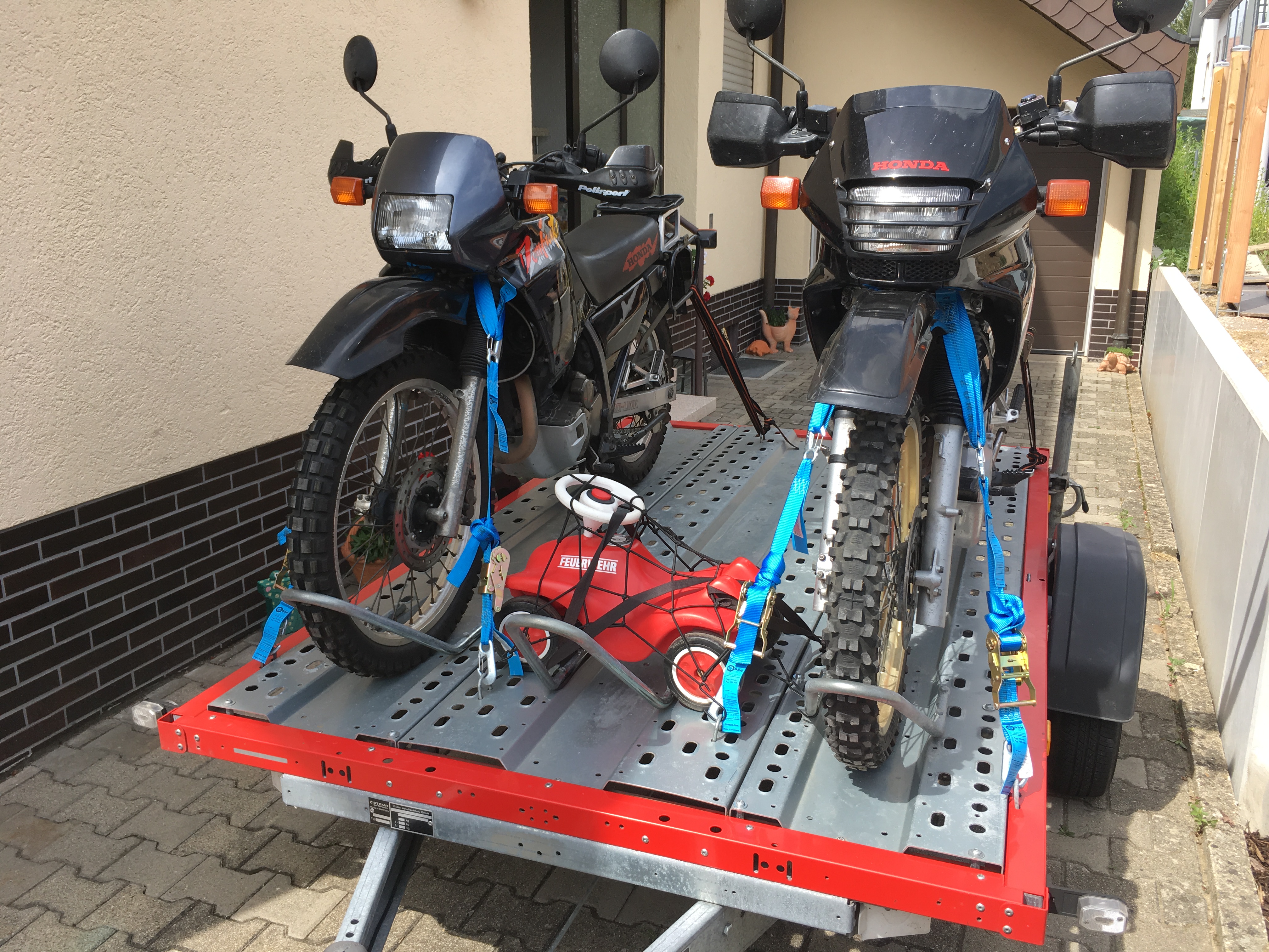 'Hochsitz' u. 'Excalibur' verladen auf Petras Leih-Hänger - im Hintergrund Kristof's Kürbis 8-) .