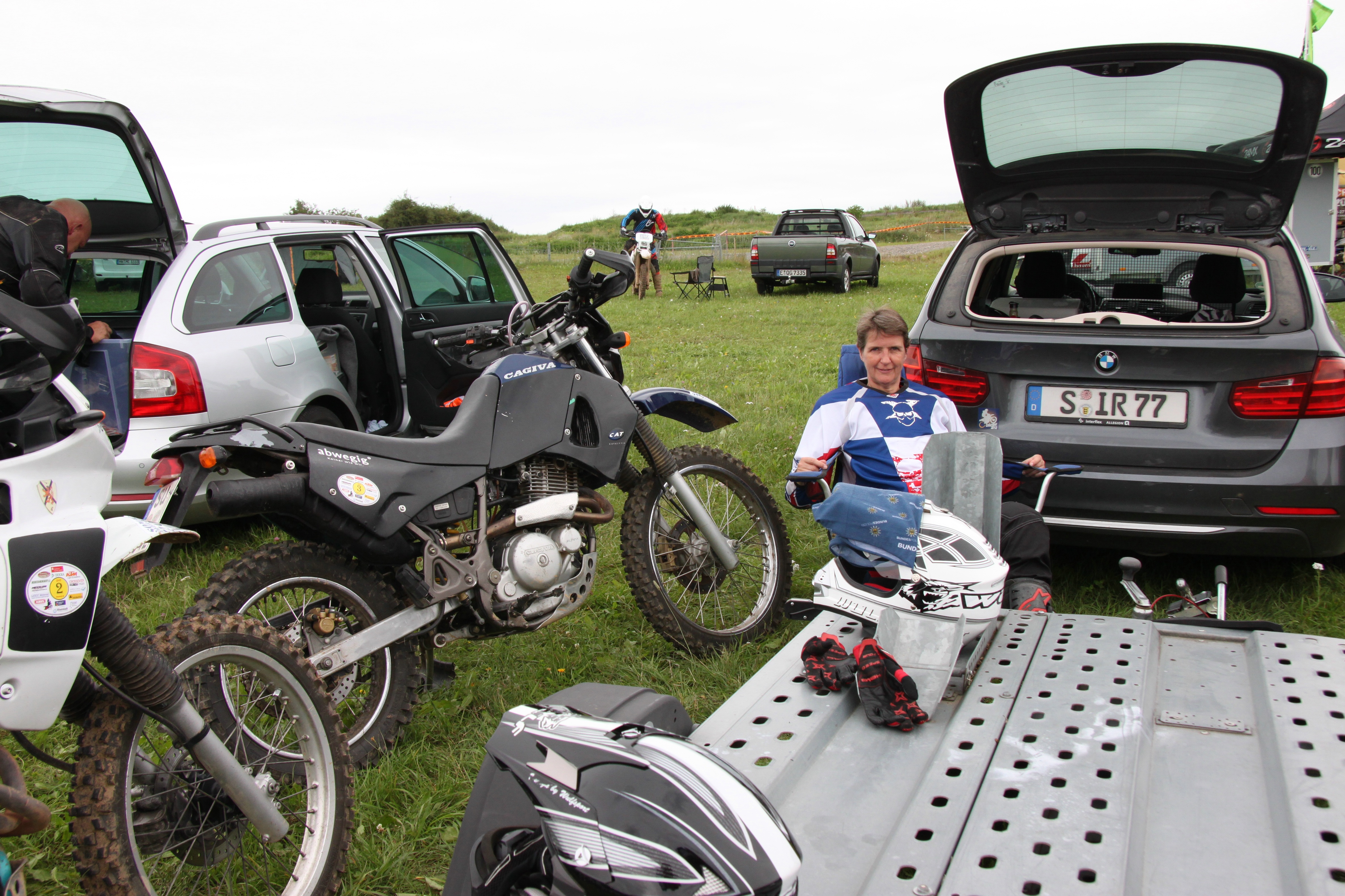 Donnerstag - nach Feierabend beim Verladen - Ms.Matilda, Kristof(Lebensgefährte v. 1) und Karlheinz - 'nagelneue 12er GS' auf 'Intermediat's' stehend (Optimist)