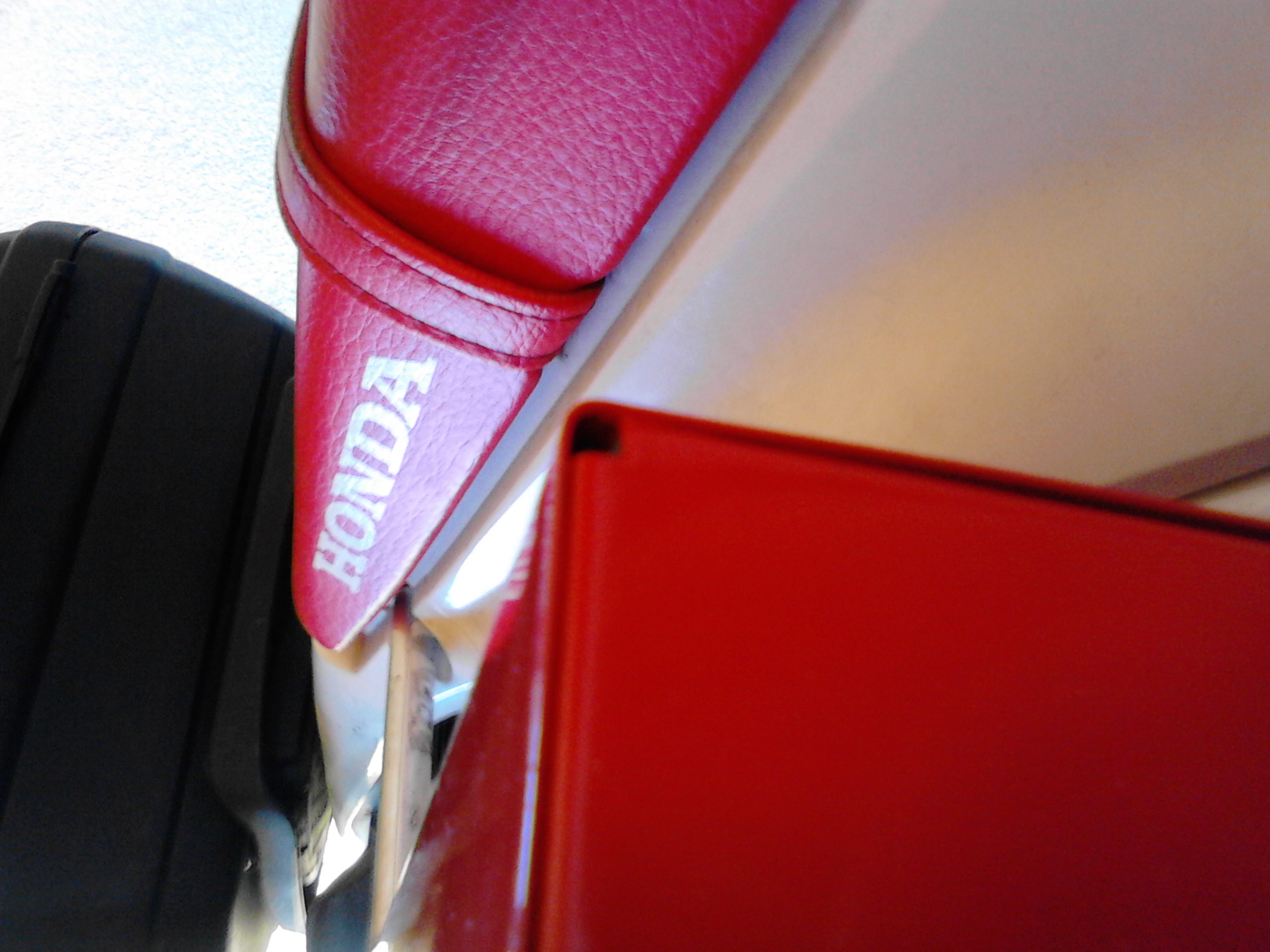 @Mario: Ich bin halt Handwerker, zu mindestens kam ich da mal her. Die Flex hat mich anfangs auch am meisten gestört. Habe mich aber schnell daran gewöhnt, da der Schriftzug und das HONDA auf der Sitzbank sowohl farblich als auch vom Kontrast her sich gut wie ich finde ergänzen. Aber wenn Du mir heiße/geeignete Aufkleber besorgst, dann klebe ich die bestimmt gerne drüber.