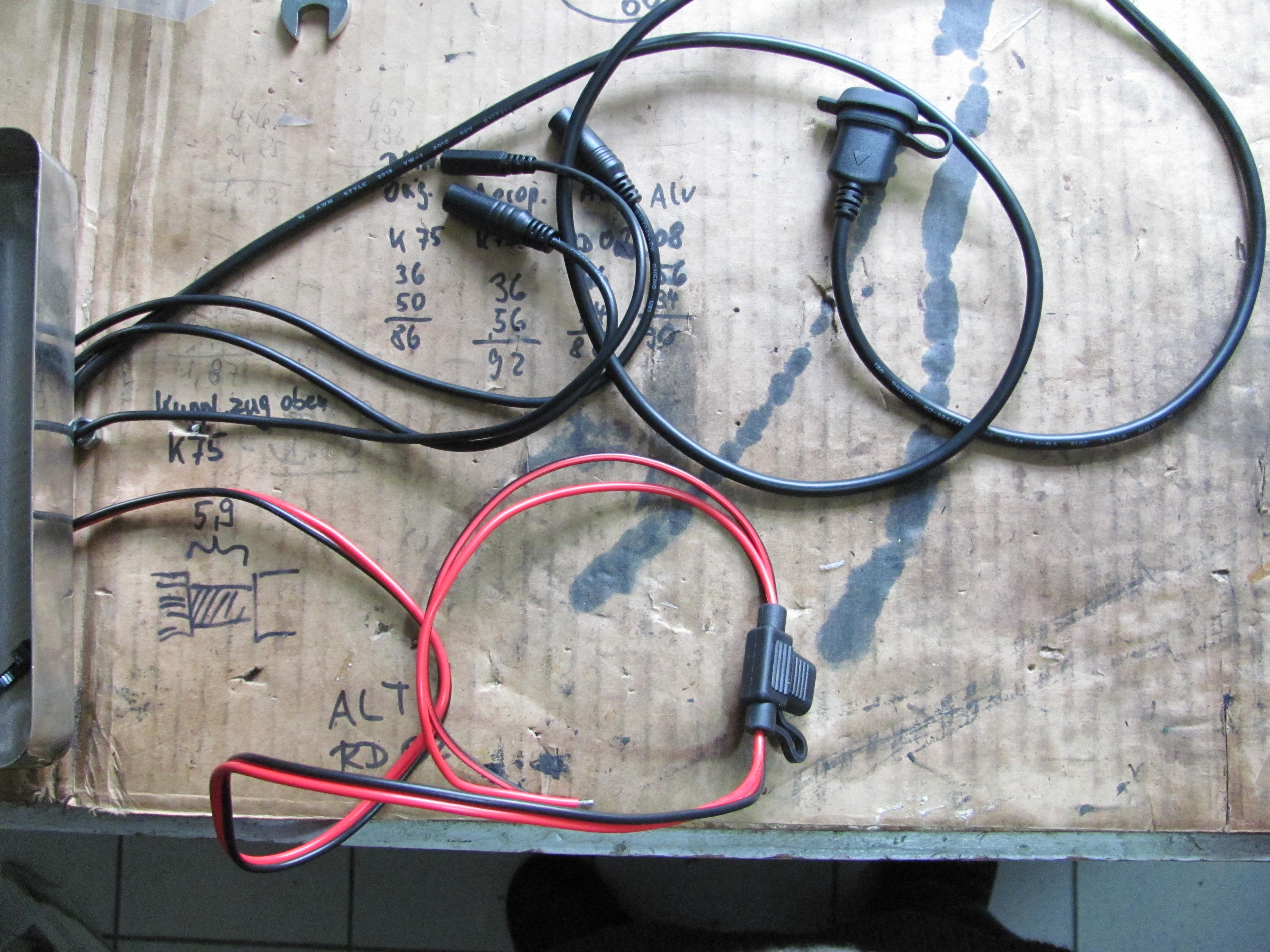 Nachdem ich nun den letzten Redaktionstermin fristgerecht erreicht habe und keine neuen Projekte mehr mache, kann ich mich endlich den wirklich wichtigen Dingen des Lebens zuwenden. Meinem Garmin Zumo 590 LM zum Beispiel, der seit einem Dreivierteljahr im Regal rumlag, weil ich einfach keine Zeit zur Montage hatte. Die Halterung ist bereits am Lenker angebaut; jetzt geht es an die Verkabelung. Eigentlich eine einfache Sache, da aber der Beipack über die Funktion der Kabelfarben keine Auskunft gibt, will ich vorsichtshalber hier nochmals nachfragen. Es ragen lediglich zwei Leitungen aus dem Teil, an denen keine Stecker verbaut sind: Ein rotes Kabel mir integrierter Sicherung und ein schwarz-rotes. Ich würde das rote Kabel mit der Sicherung an Zündungsplus anschließen und das schwarz-rote an Masse. Die anderen Kabel haben allesamt Stecker an den Enden (siehe Bild 2) und kommen für die Stromversorgung damit sicher nicht in Betracht. Es wäre schön, wenn mir ein Garmin-Besitzer Auskunft geben wollte, ob ich richtig liege.