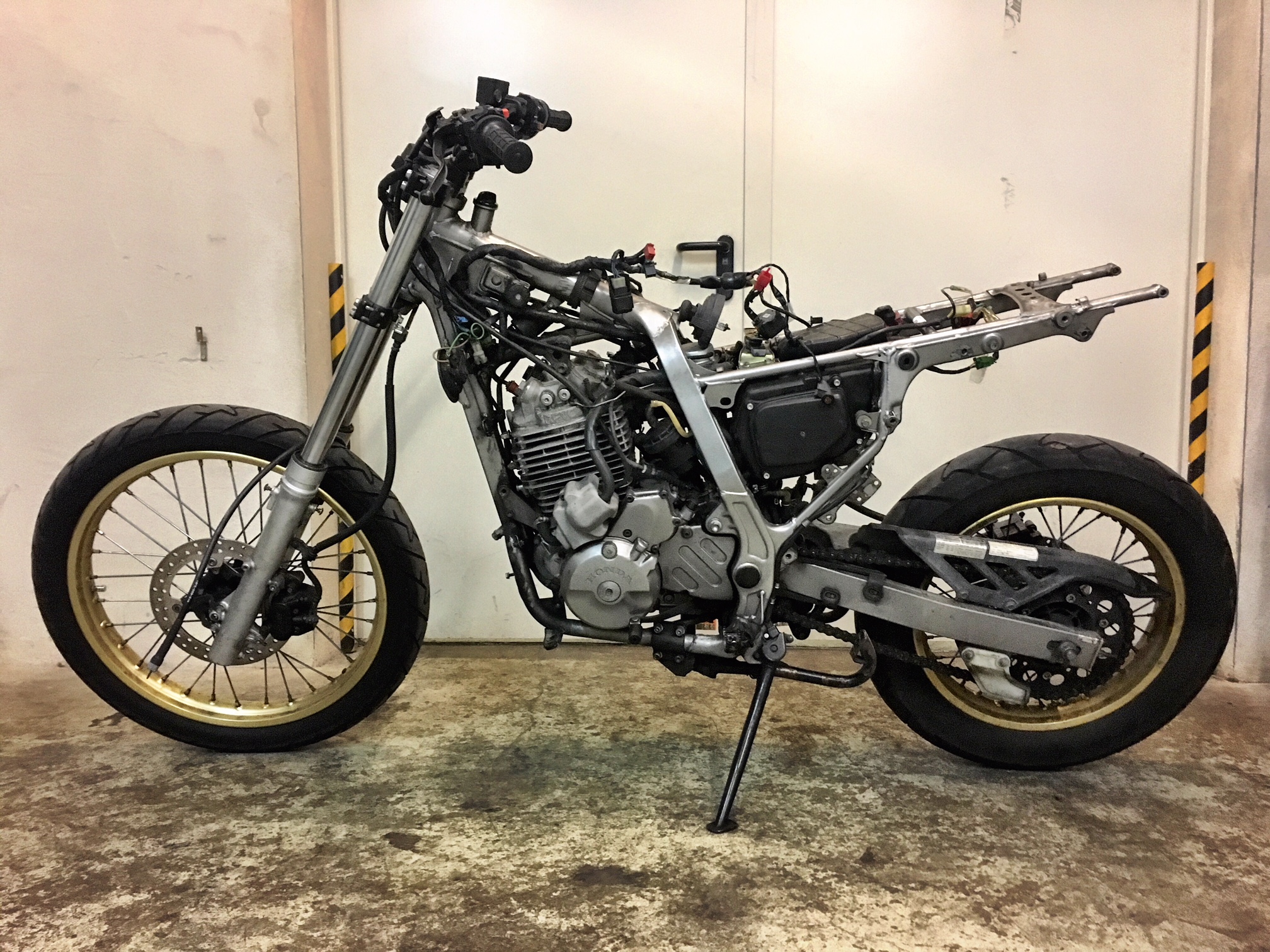 Die Räder will erst mal so lassen da ich den Goldlook ganz gut finde. Oder gibt das 19er Vorderrad von der SLR 650 in dem gleichen Look. Die Elektrik soll auf m-unit umgerüstet werden. Wo ich noch nicht ganz im klaren bin ist die Frontansicht. Hab noch keinen Scheinwerfer gefunden der mir gefällt. Anregungen werden gerne angenommen