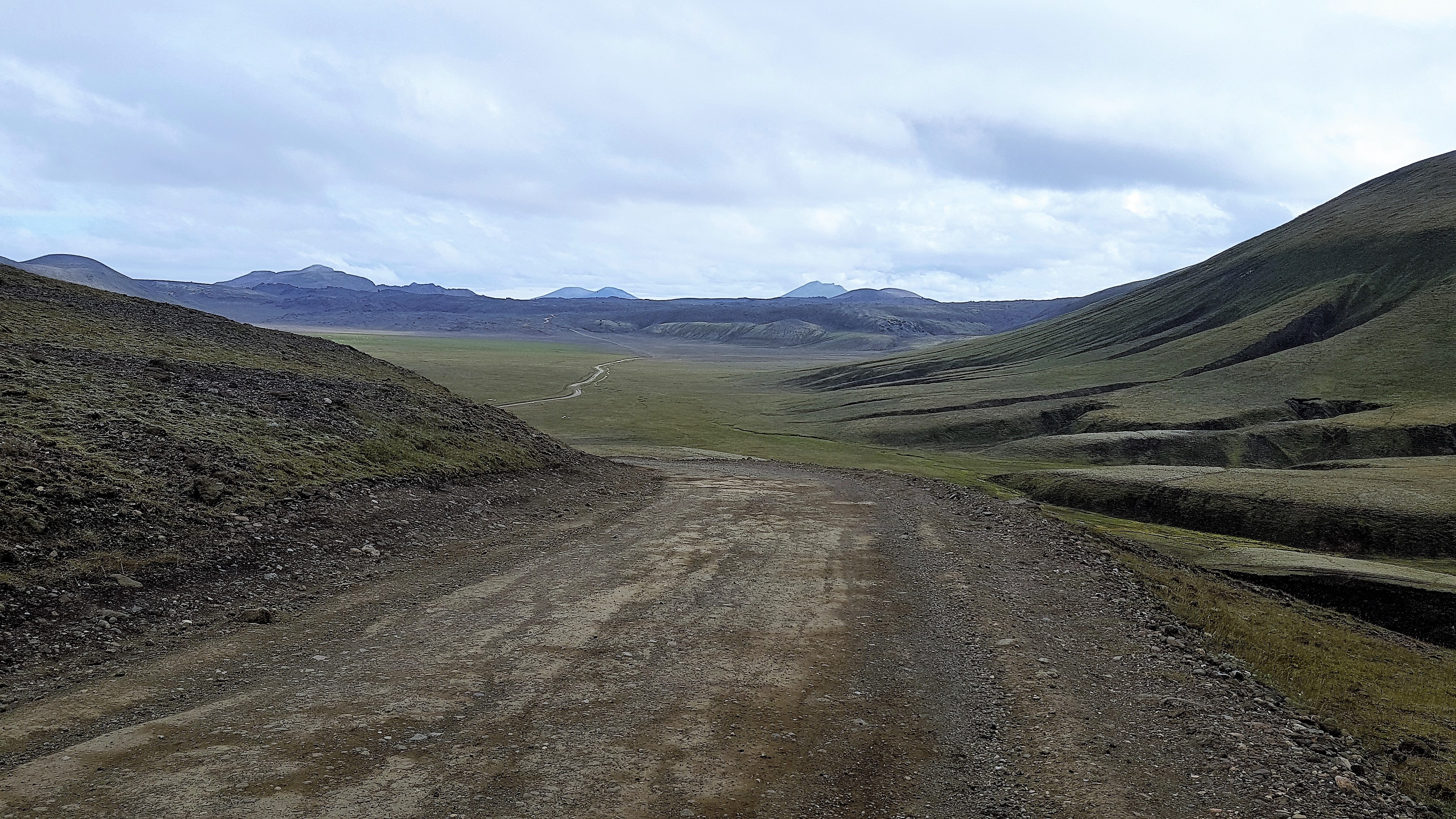 ca. 44 km, Fahrzeit 3,5 bis 4,5 h, einsam (wird gefühlsmäßig fast nur von den Serviceleuten der in der Nähe verlaufenden Telegraphenlinie befahren), Notfall App 112 kann über große Bereiche genutzt werden! Und bitte, wie auf Island überall vorgeschrieben, auf dem Weg / Trail bleiben! Was in diesem Fall recht schwierig war, trotz Tageslicht und guter Sicht!