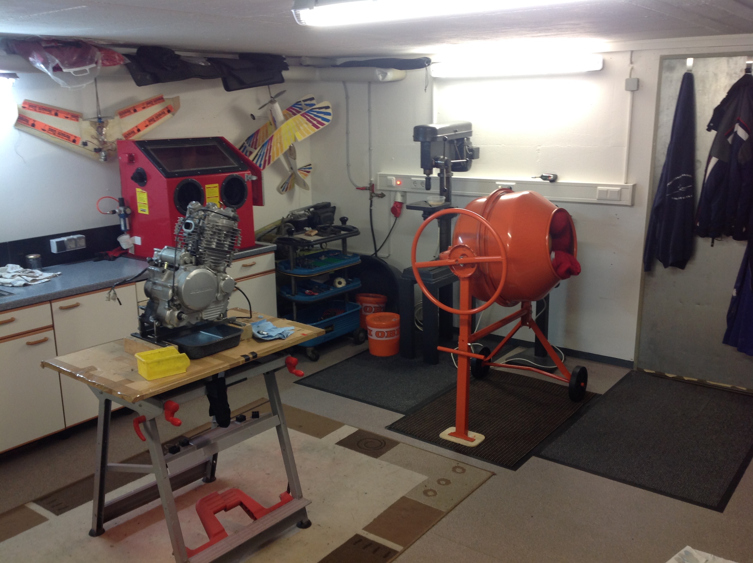 -äääh das orangene Ding rechts neben der Bohrmaschine- Hier wird in verschiedenen Lagen für jeweils ca. 3 Stunden das Bleischrot durch den Tank "geschoben".