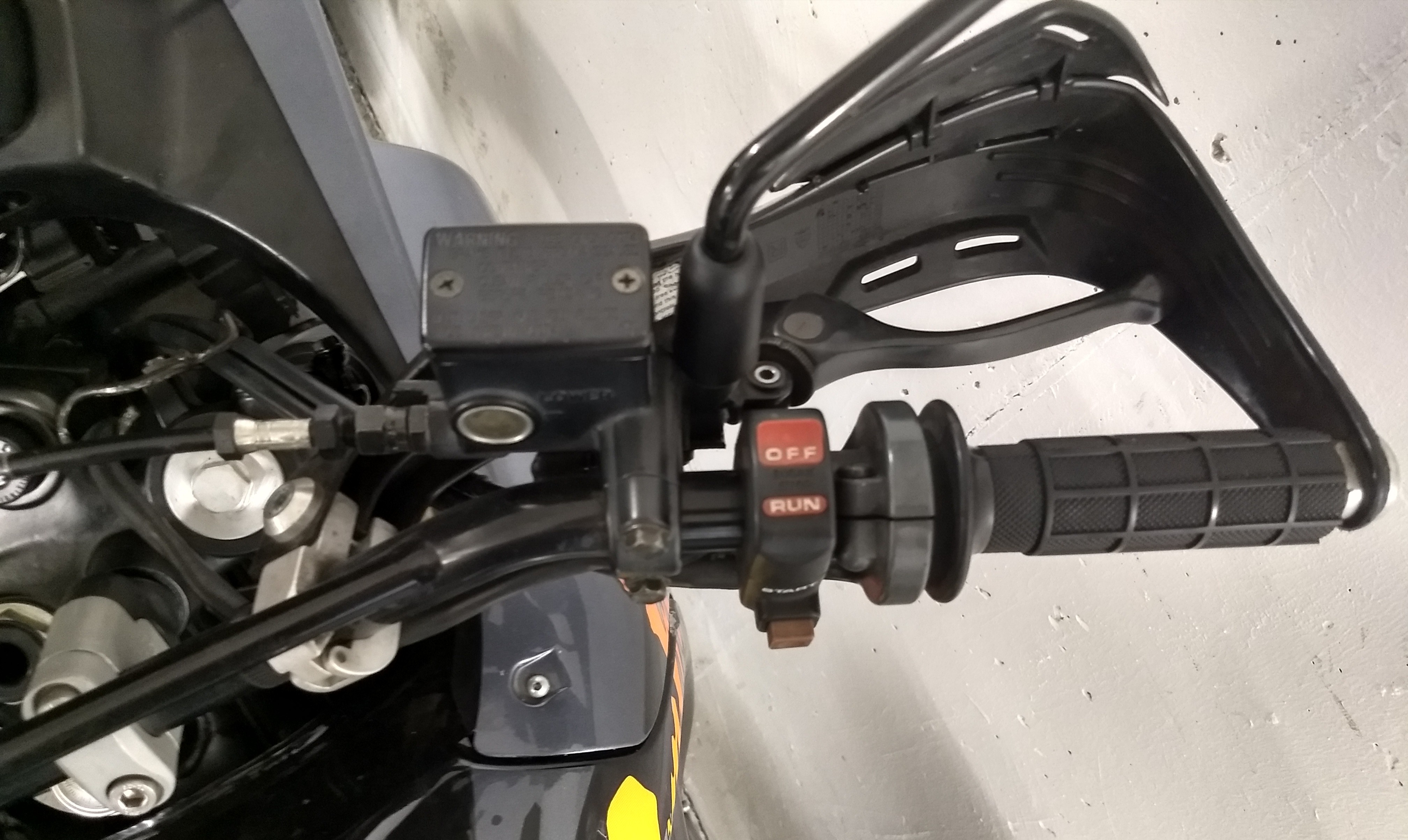 Also: Ich bin nach wie vor an Fotos interessiert, an denen man genau sehen kann wie der Protektor an der Bremsleitung und am Bremsflüssigkeitsbehälter vorbeigeht. Und es muss der originale Lenker verbaut sein. Alles andere hilft mir gerade nicht weiter.
