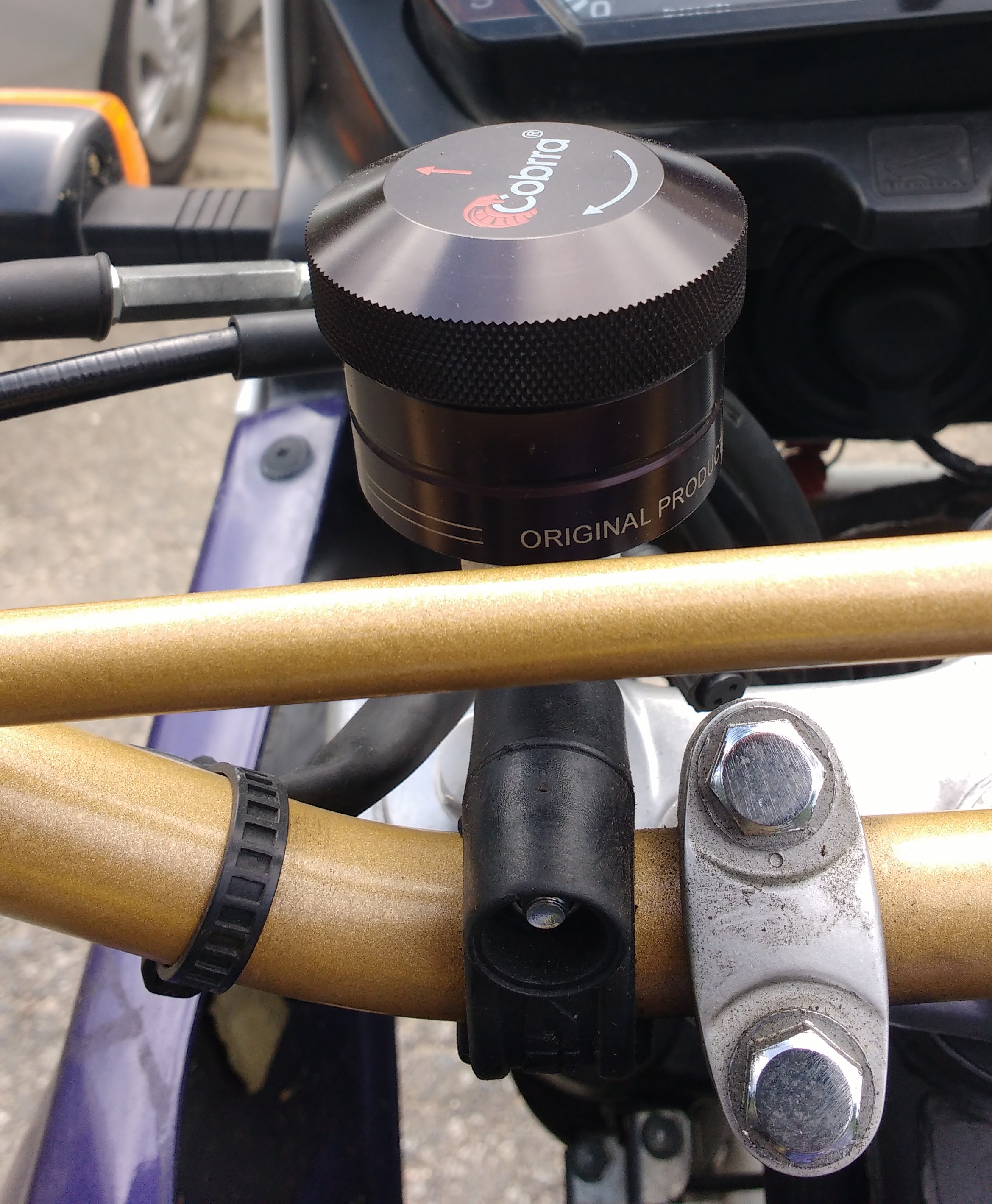 Für den Einbau habe ich dann doch improvisieren müssen, da ich in meiner Ungeduld keinen passenden Platz am Mopped, außer dem Lenker gefunden habe.