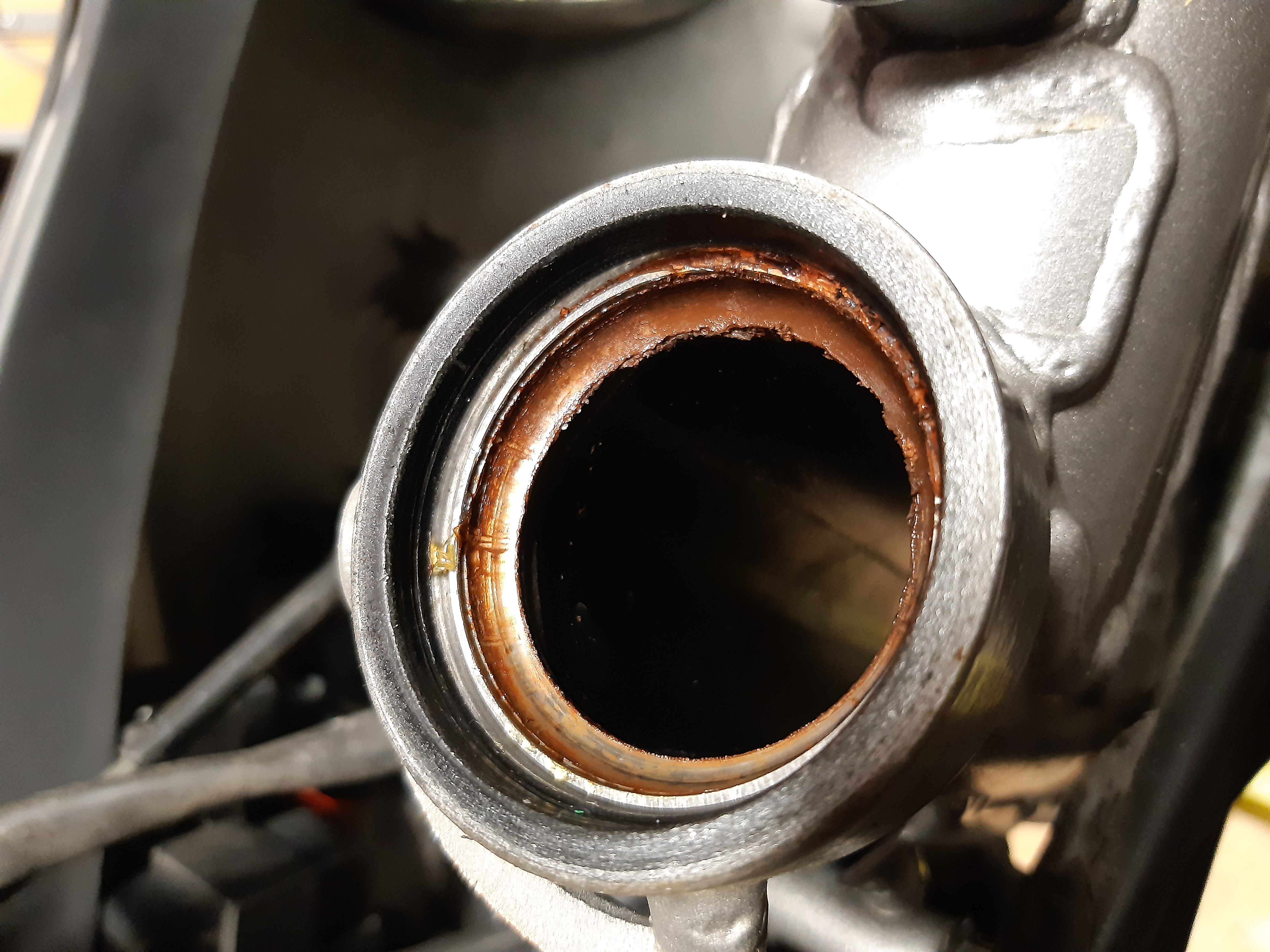 Meine Arbeit bis eben war das alte Lenkkopflager zu Demontieren. Die Lagerschalen möchten nicht aus sitz, dabei strengte sich die obere lagerschale mehr an als die untere. Sind aber jetzt draußen...