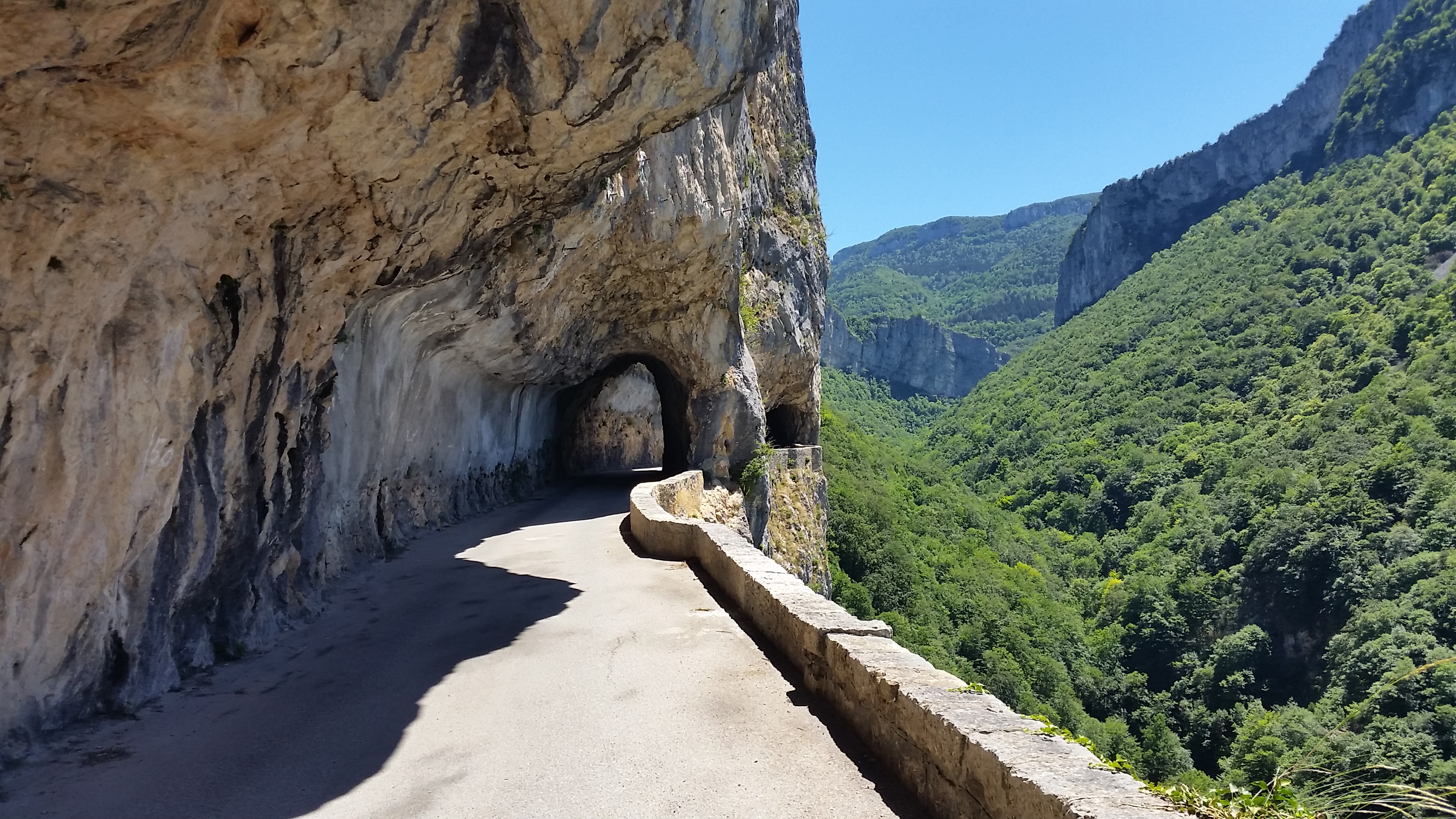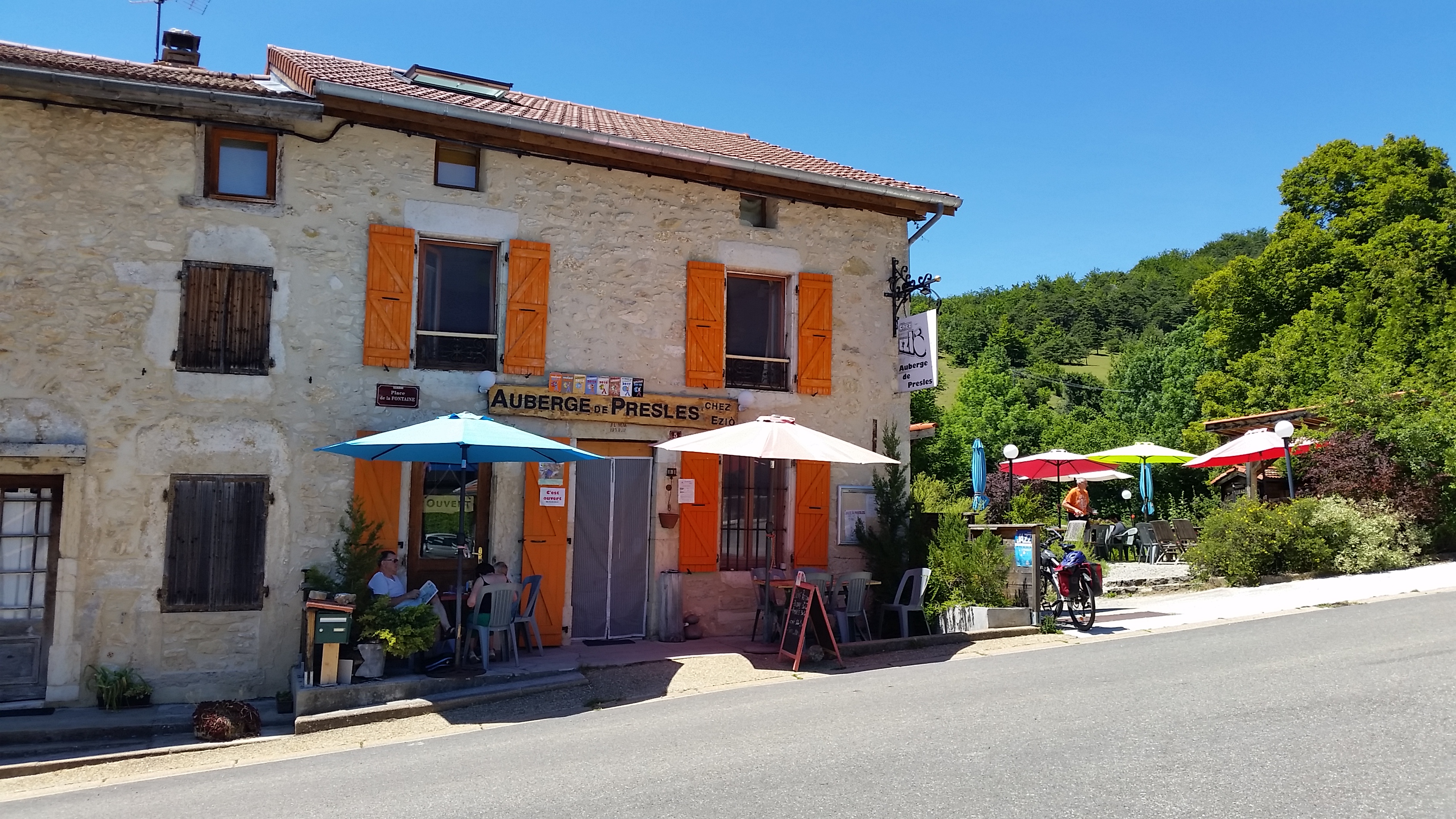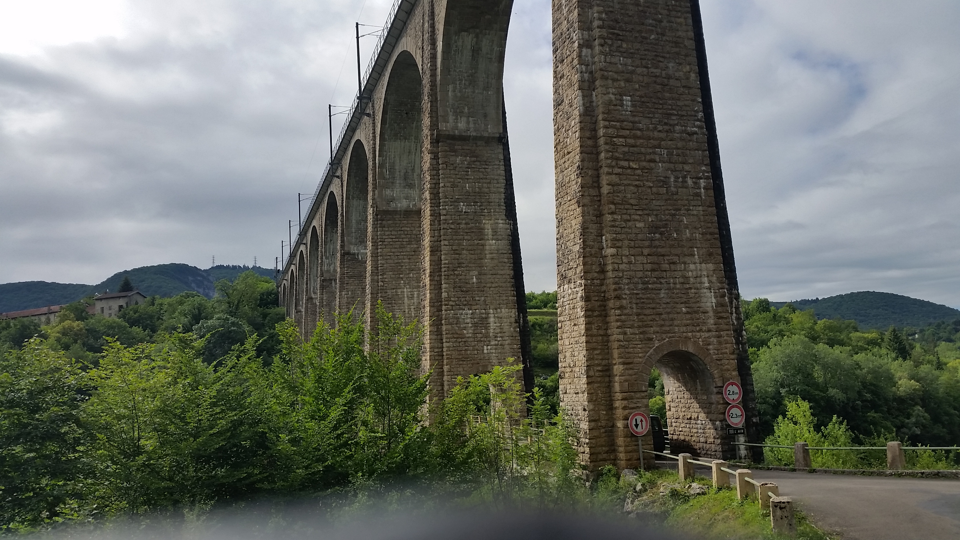 Hmmm, wie fang ich denn an? Heute Morgen gleich ein Viadukt, unten Autos, oben Eisenbahn. Im laufe der Tour die Isère überquert. Ich auf der ,,neuen" Brücke , daneben die Alte. Dann weiter zum Vercors und Fahrt nach Presles. Mit dem Wort spektakulär ist das alles viel zu milde ausgedrückt . Beim fahren entlang des Abgrundes ist etwas Schwindelfreiheit gefragt. So schlecht war's mir mal mit 20 beim saufen auf der Strassenfastnacht. Und wie bekommen die die Baumstämme ins Tal? Hochkant, oder biegen die die Stämme um die Kehren? Nun sitze ich an der Auberge de Presles im Schatten und schütt mir einen Kaffee und Apfelschorle innen Kopp.