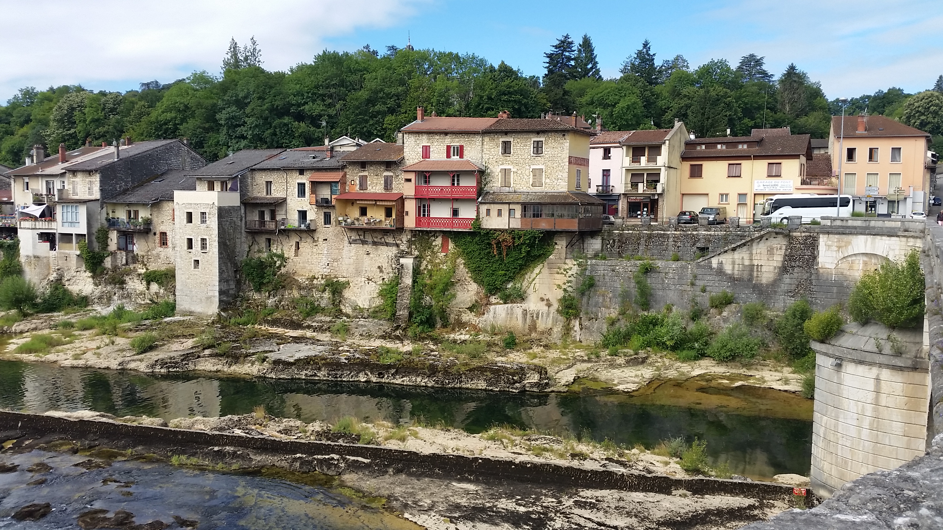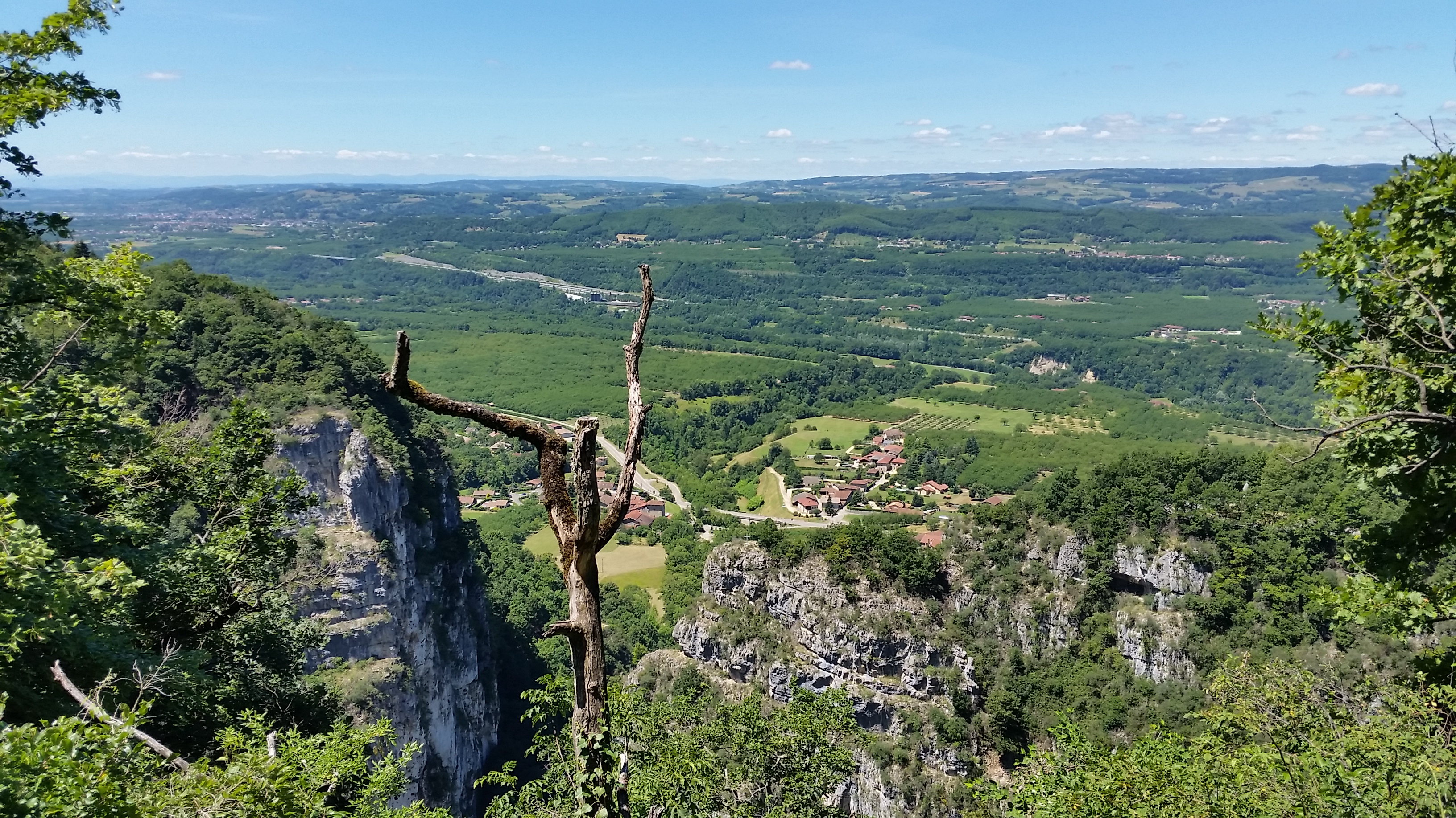 Bei der zweiten Unterkunft angekommen. Waren die Franzosen immer schon so nett und freundlich? Werde überall mit offenen Armen empfangen. Hoffentlich bleibt das so. Die Gegend Doubs, Jura, Ain ist echt spitzenmäßig. Die Straßen über Land fast leer. Dachte immer Kurven wären zum schwindlig fahren? Kreisel gibt es hier, als hätten die Franzosen sie erfunden. Dann bin ich über einen Col del St. Solin gekommen, noch nie was von gehört aber toll. Und ich dachte einmal, ich hätte mich verfahren und bin in Lappland. Dabei durch France Comté und Morbier gekommen. Jede menge Fromagerien gesehen, aber keine hatte auf. Hätte so gerne eine Brotzeit mit Käse, Salami und Baguetteersatz (Brötchen) gemacht. An meinem Rastpunkt eine herrliche Aussicht über das Jura, später von einem Aussichtspunkt auf einen Stausee, wo der Ain aufgestaut wird. Und dann Ankunft im Hotel in de la Source - Thoirette. Jetzt gibt's gleich n Bier