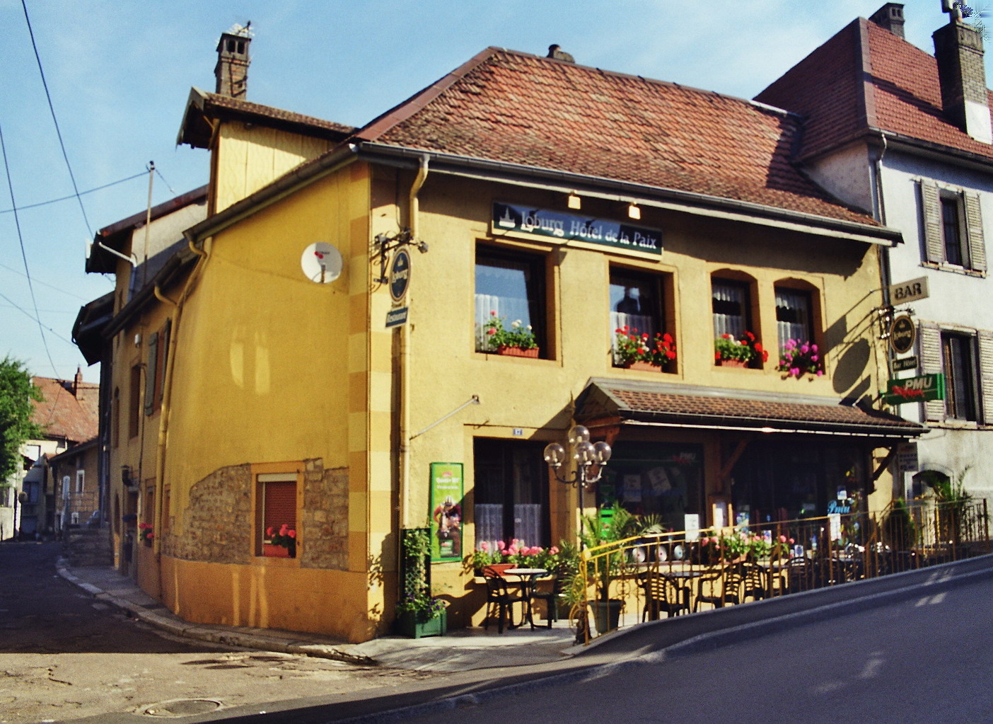 Die Route National 83 führte uns über Mulhouse und Belfort bis ins schöne Doubstal. Der ungeplante Grenzaufenthalt und die zahlreichen Ortsdurchfahrten verzögerten unsere Fahrt dermaßen, dass wir bald nach einem geeigneten Quartier zu suchen begannen. Wir fanden es in Clerval, einem kleinen Ort etwa 30 km westlich von Montbeliard. Das direkt an der Route Nationale gelegene „Hotel de la Paix“ war eine Bruchbude übelster Sorte: In den Zimmern lösten sich Putz und Tapeten von den Wänden, und warme Duschen suchte man vergebens im ganzen Haus. Trotzdem legte die Besitzerin ein derart hoheitsvolles Gebaren an den Tag, als sei sie die adelige Herrin eines uralten Stammschlosses. Wir blieben aus zwei Gründen: Erstens gab es ein ganz passables Restaurant und zweitens schien alles spottbillig zu sein. Die Kehrseite der Medaille bekamen wir in der folgenden Nacht zu spüren: In regelmäßigen Abständen drang auf- und abschwellender Lärm durch die altersschwachen Zimmerfenster. Verursacht wurde er von termingeplagten Fahrern, die ihre schweren Fernverkehrslaster rücksichtslos durch die enge Schlucht der örtlichen Hauptstraße prügelten.
