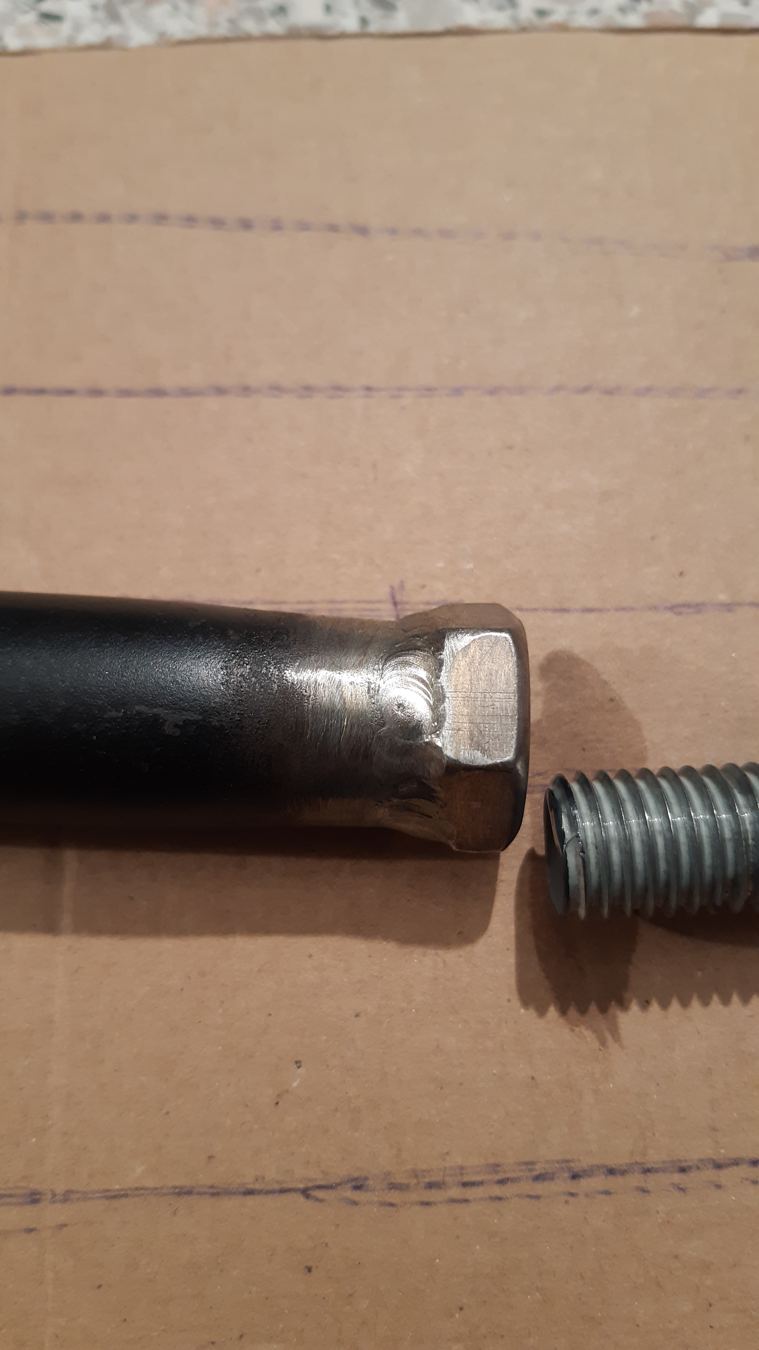 Ich habe oben an der Stelle wo du die Mutter angeschweisst hast , eine M12 Buchse eingeschweisst, und unten die M12 Gewindestange anschweisst.