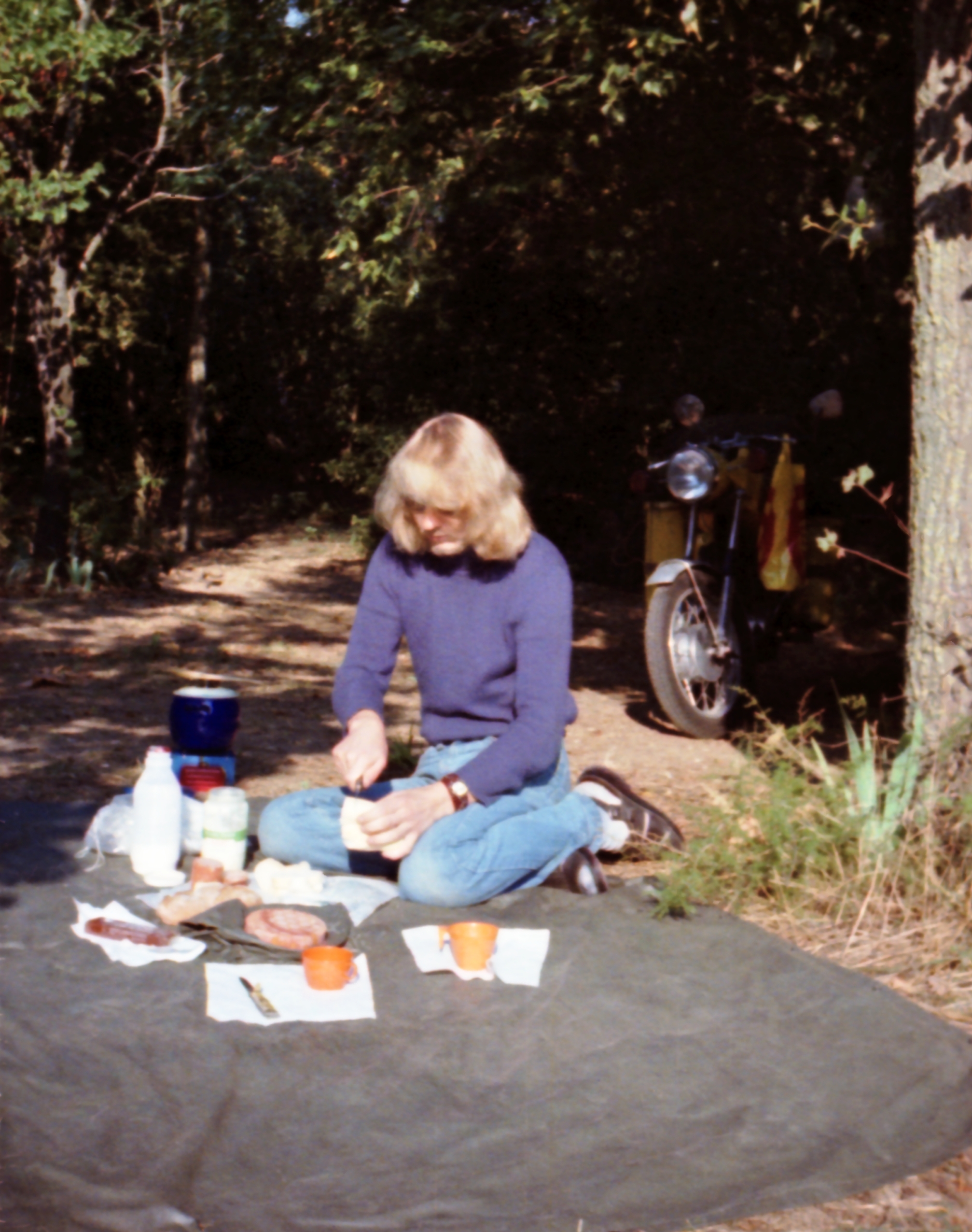 - Die Emme im heimischen Stall. Nee, nee: Auf der Spanienreise 1977 besaß Sigrid schon ihre Lederkombi! Aber 1976 waren noch Jeans angesagt.