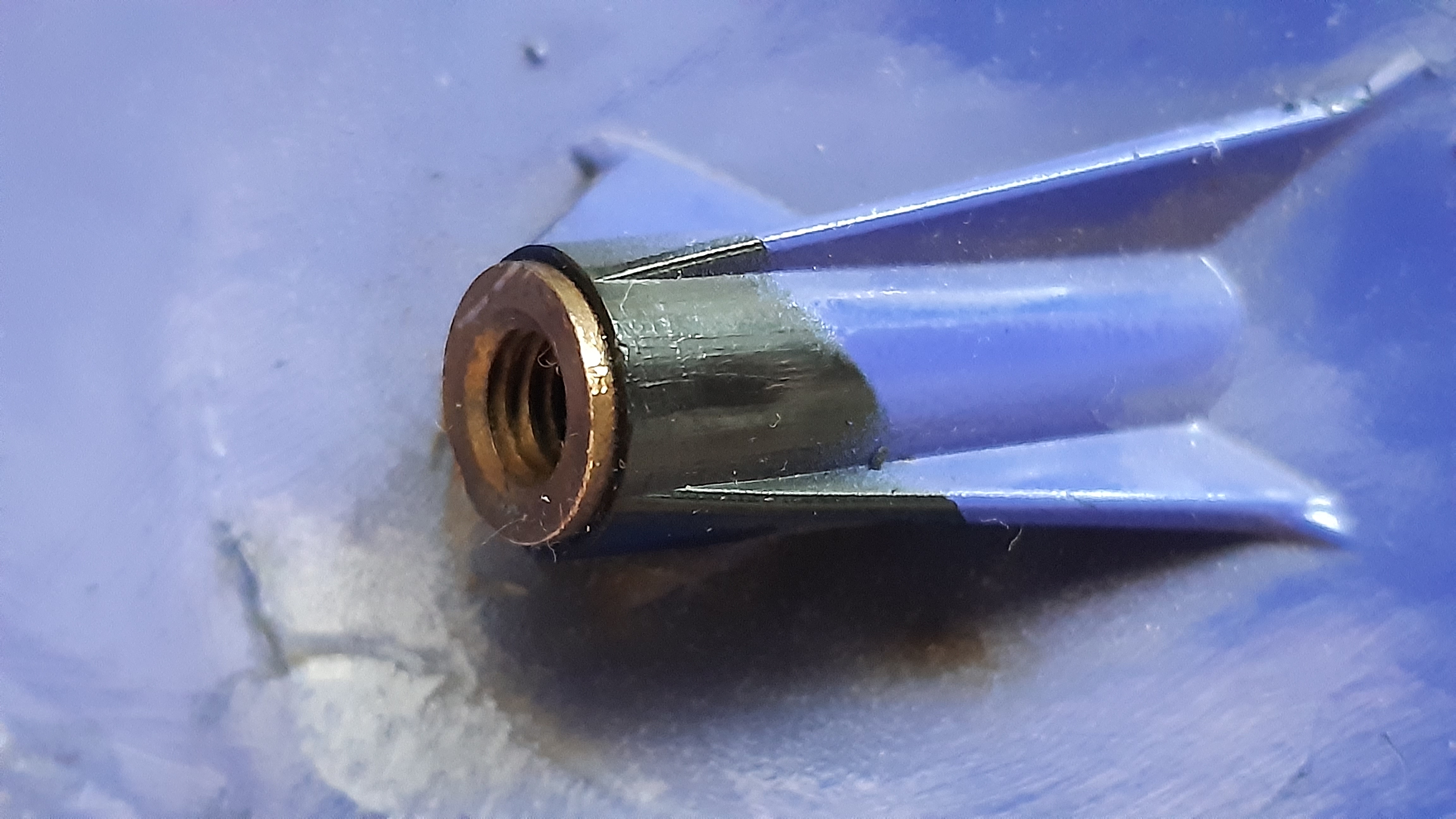 Wenn man diese Gewindehülsen zieht, ohne vorher das innenliegende Plättchen zurück zu holen, beschädigt man die äußere Kunststoffhülle.