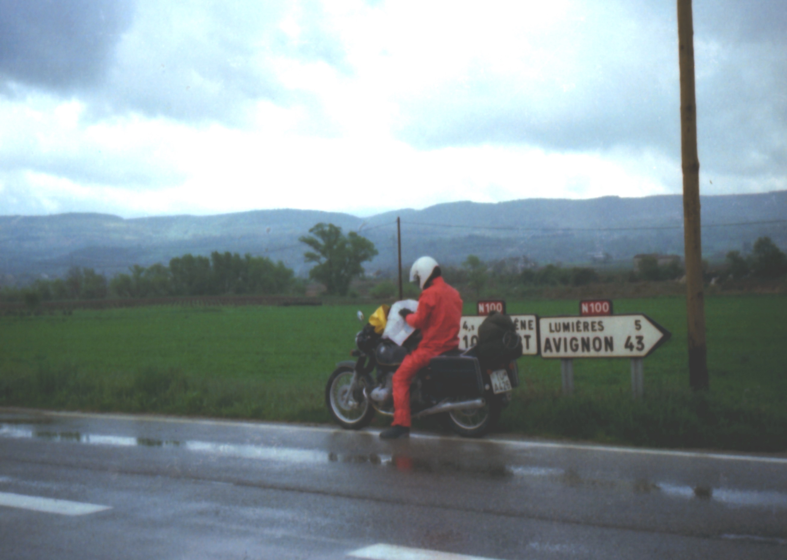 Zu Hause angekommen, hatte ich nichts weiter zu tun, als meine Gummikuh wieder einzumotten. Das war hart. Während des langen Winters hielt ich mich psychisch über Wasser, indem ich Motorradkoffer von Krauser und einen Elefantenboy von Harro kaufte. Am 29. April 1978 war unsere Geduld schließlich zu Ende. Wir packten und starteten bei strahlendem Sonnenschein nach Frankreich Diesmal sollte es in die Provence gehen. Die ersten Kilometer waren unbeschreiblich. Statt eines scheppernden Zweitakters mit bescheidenen 19 PS trieb eine wuchtige Dampflokomotive die Fuhre kraftvoll voran. Überholen wurde zum Kinderspiel. Ich verfiel in einen regelrechten Glücksrausch. Bei Donaueschingen machten wir Rast und bemerkten mit tiefer Befriedigung, dass sich ein zufällig anwesender Fußgänger vor uns in den Staub warf. Ob es nun die Schönheit meiner Frau war, die ihn überwältigte, oder aber der majestätische Anblick des klassischen Boxermotors, blieb ungeklärt.