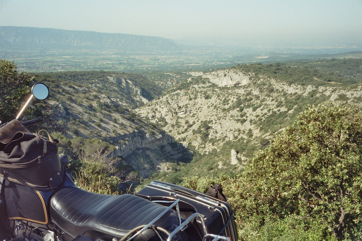 Am nächsten Morgen musste ich tanken. Dabei quoll die Tankdeckeldichtung auf und war nicht mehr in Form zu bringen. Unser nächstes Zwischenziel stand damit fest: der BMW-Händler von Tulette, einem kleinen Ort, der etwa 20 km nördlich von Orange liegt. Da uns das Wetter wohl gesonnen war, wählten wir die schönste Route aus, die uns die Karte zu bieten hatte. Sie führte über St. Trinit in die malerische Gorges de la Nesque. Bei Carpentras tranken wir Kaffee und sogen wieder einmal die fremde Atmosphäre des ländlichen Frankreich in uns auf.