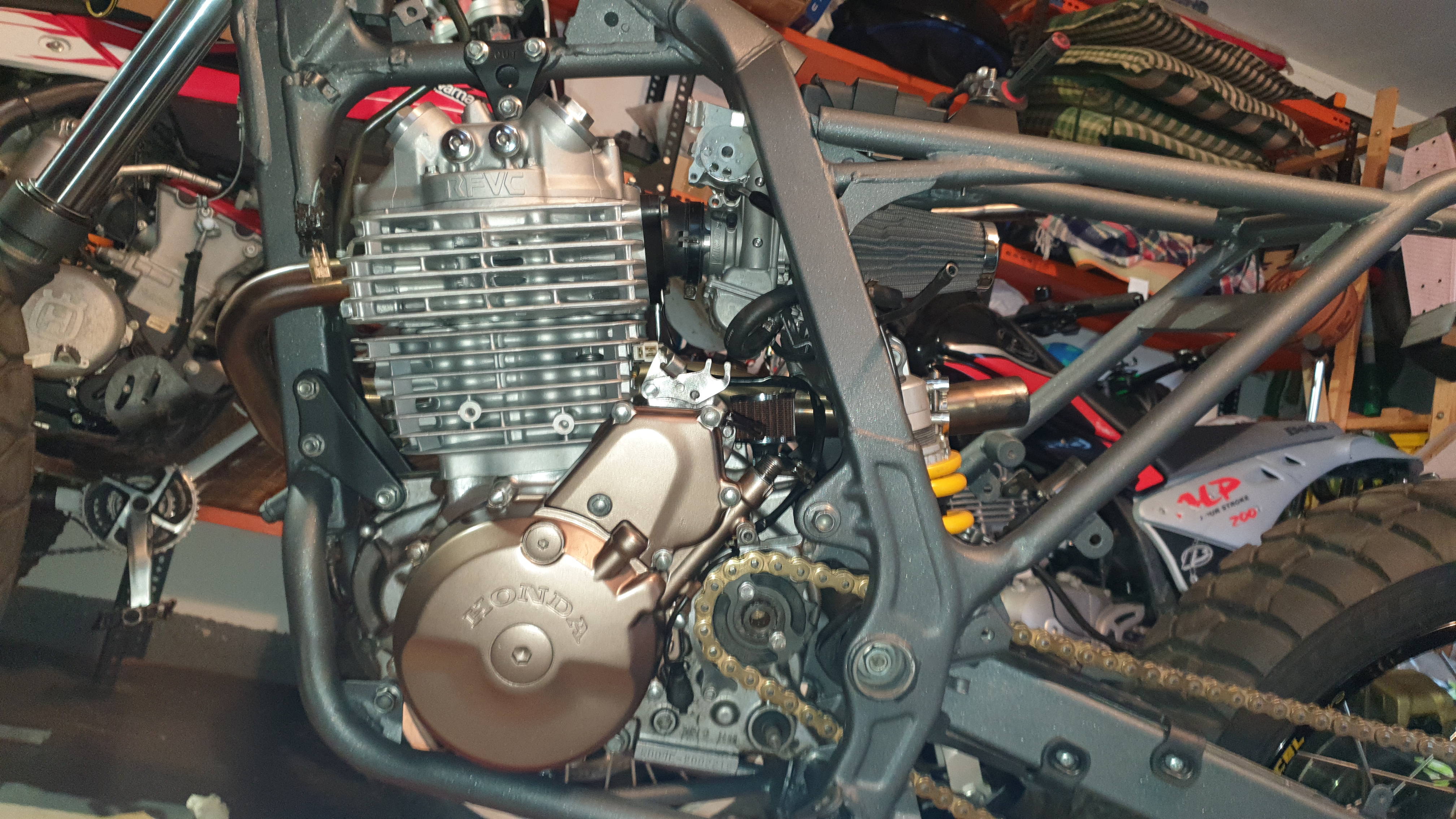 Rahmen, Gabel, Schwinge auch gelackt. Wow, sehr geile Farbe.