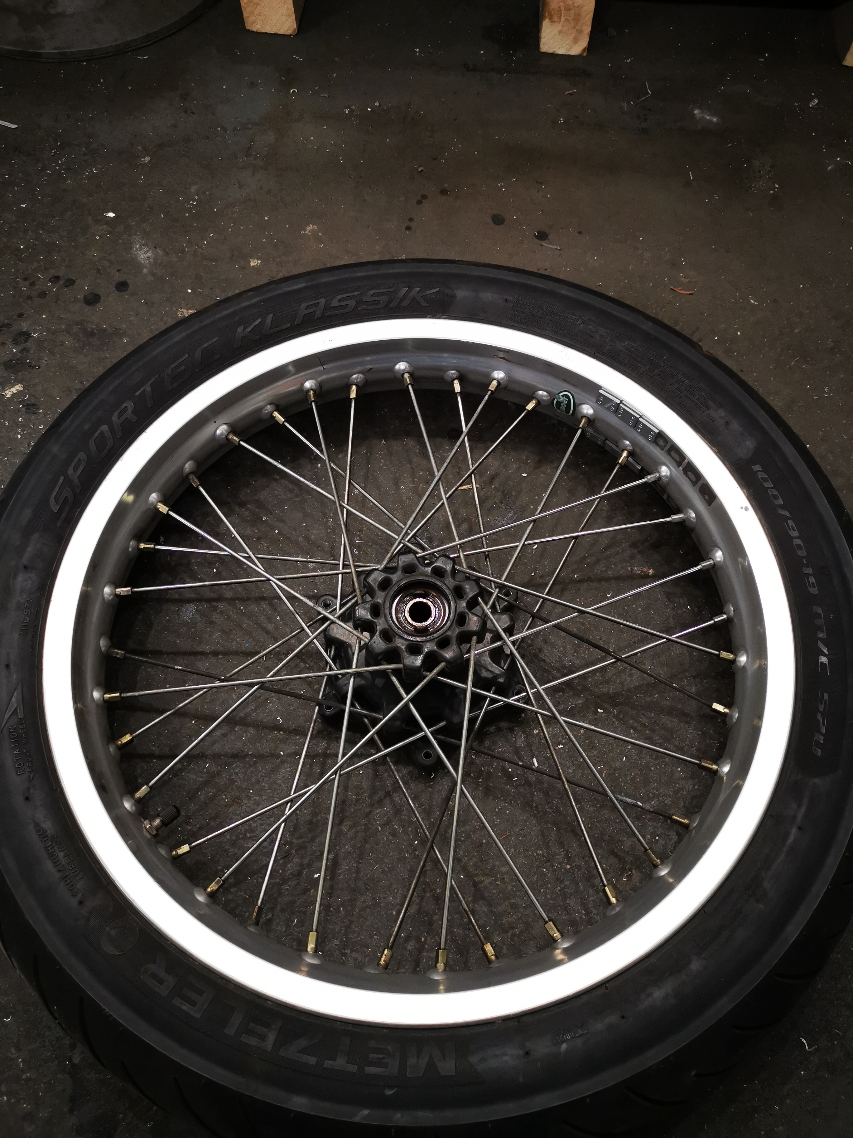 Ich verkaufe ein silbernes 2,15x19 Vorderrad für eine SLR 650, das bei mir in eine Dominator hätte eingebaut werden sollen, hab dann aber einen kompletten Radsatz gefunden, so ist mir dieses Rad übergeblieben!