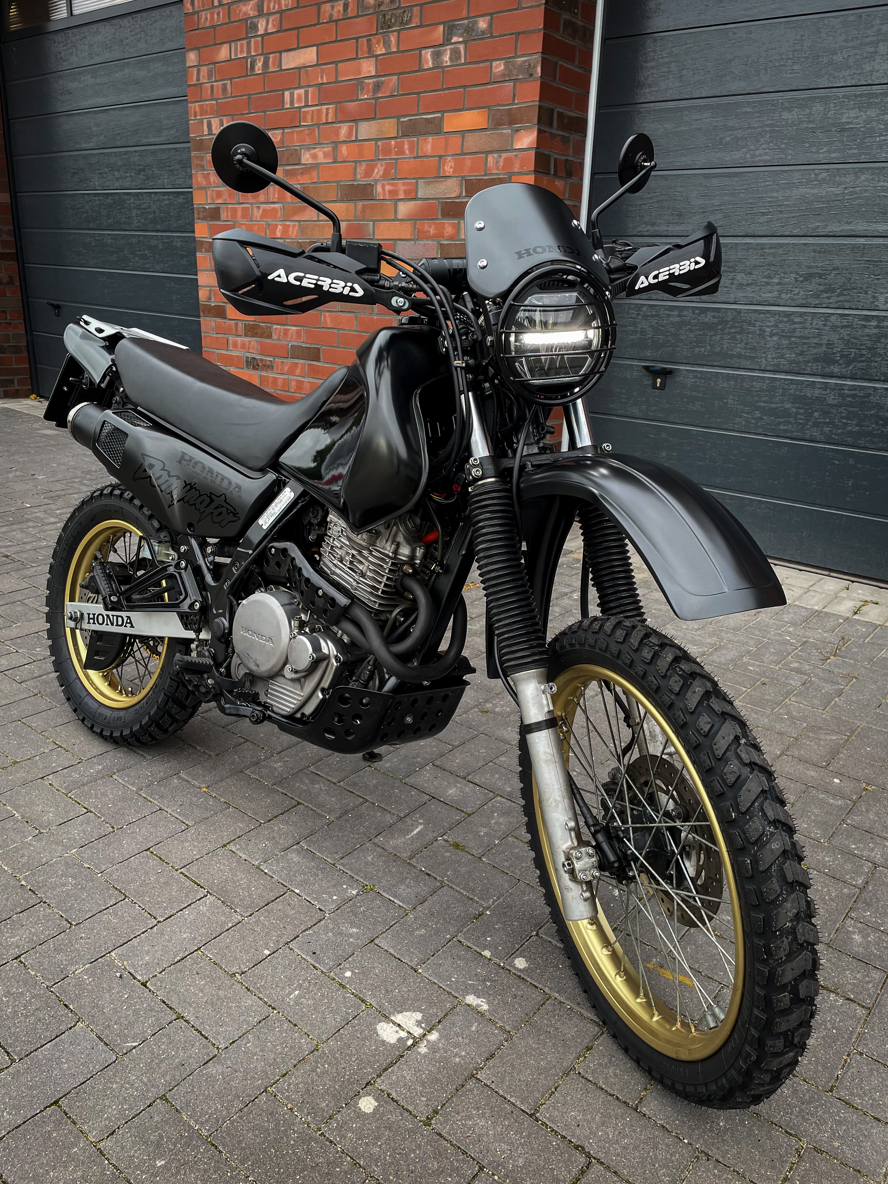 Der Fender ist der RTECH Supermoto Front Fender. Der ist auch bei der Gorm Dominator verbaut.