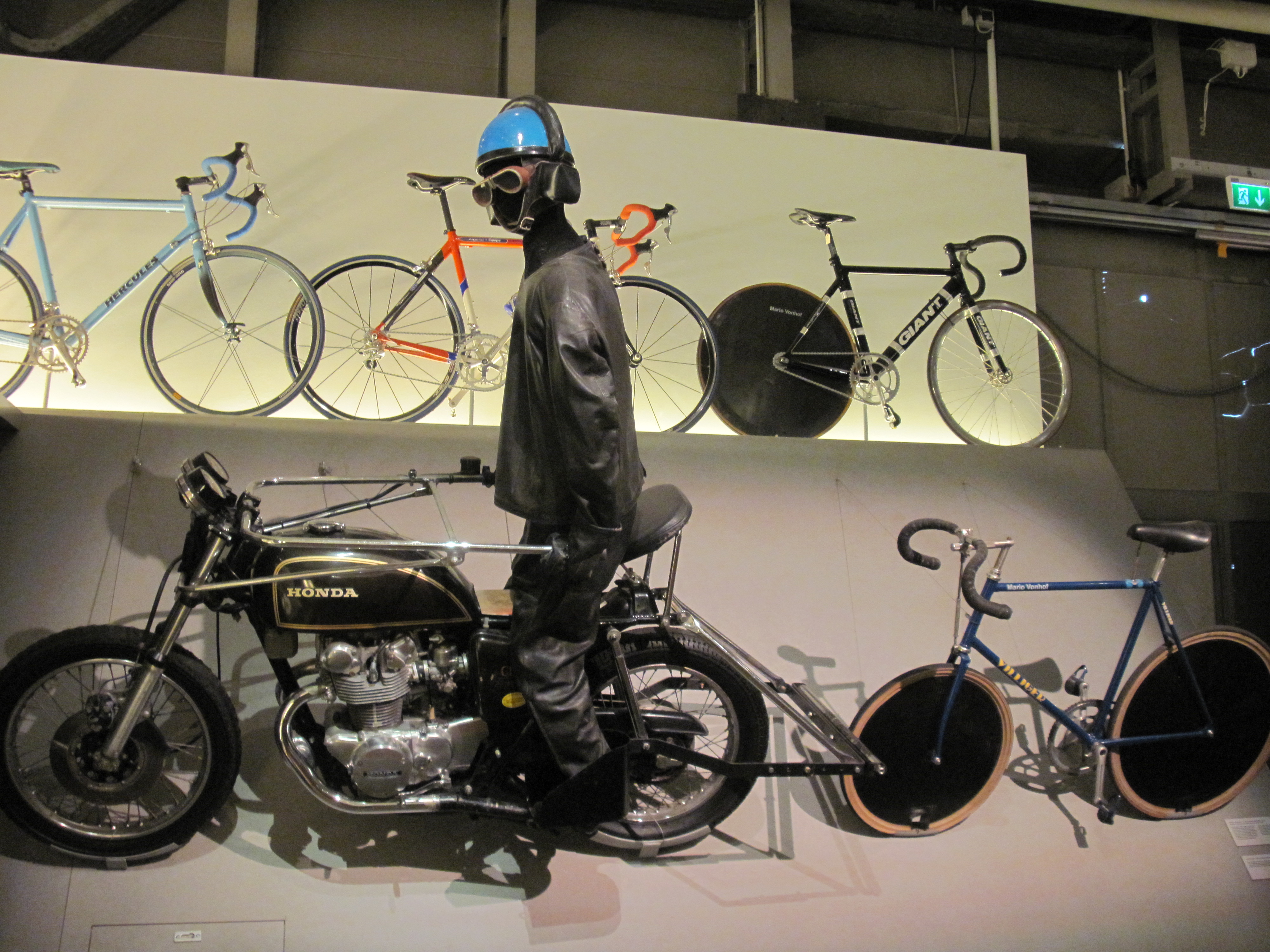 Bei dem angehängten Bild, aufgenommen im Freilichtmuseum in Klockenhagen, lässt sich das System erkennen. Das andere Bild zeigt eines der Stehermotorräder in Singen und man kann die Rolle erkennen. So und nach diesen schweren Ausführungen genehmige ich mir - nein keinen Forumstypischen Ramadingsbums, sondern einen Ouzo.