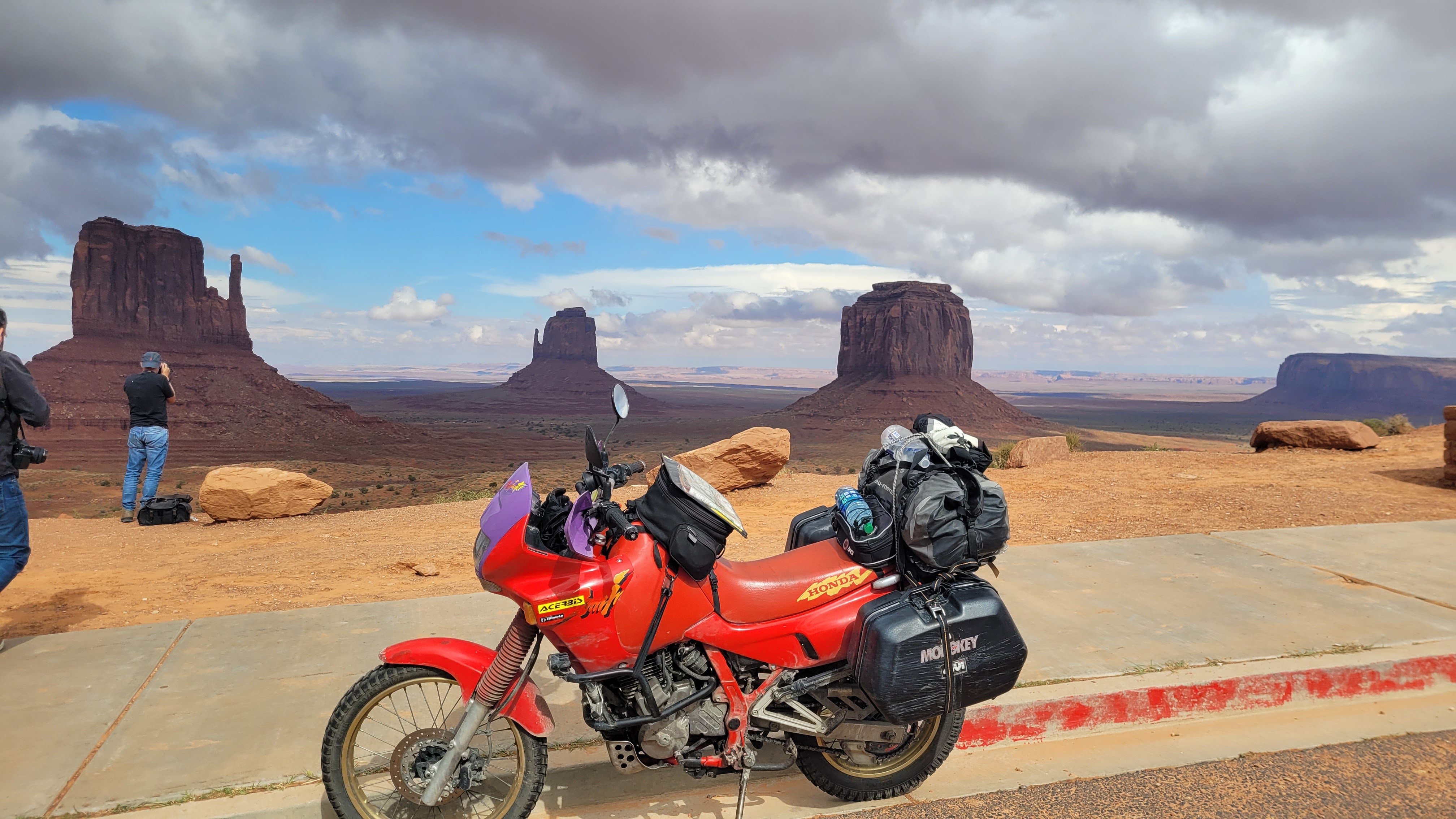 Ich bin am 25,8, gestartet und seit Achorage jetzt über 8000 km gefahren. Bin im Moment in den Red Rocks bei Sedona und fahre die nächsten Tage nach Mexiko. Zur Zeit ist es hier tagsüber oft über 35 Grad warm, in Alaska warens morgens meistens nur 12 Grad. Der Domi ist das aber offenbar egal.