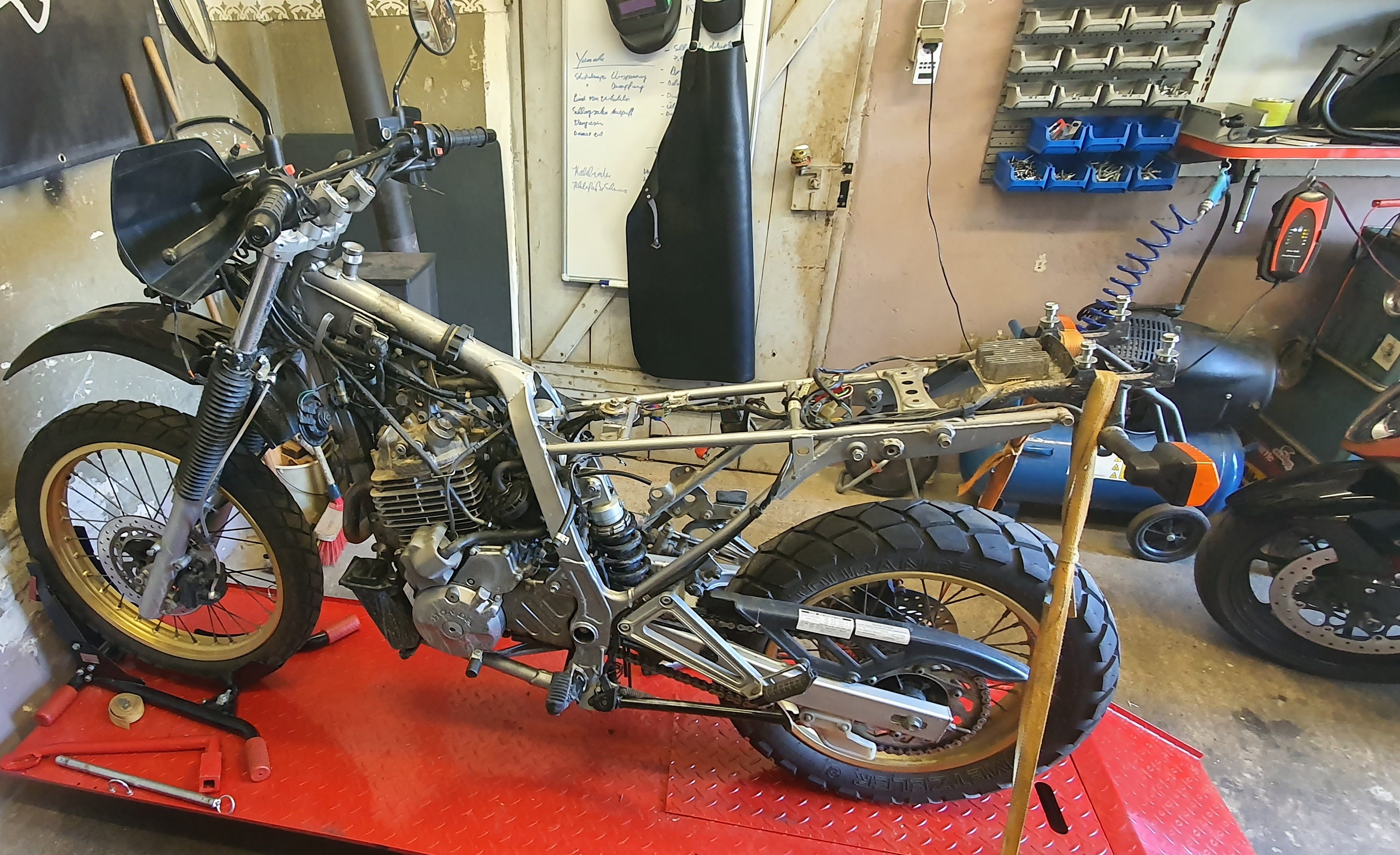Gestern habe ich sie auf die Bühne genommen und sie weitestgehend nackt gemacht für eine Bestandsaufnahme. Sie hat laut Tacho 46t km gelaufen und Resultierend aus der Probefahrt stehen folgende Punkte bereits auf der To-do Liste:
