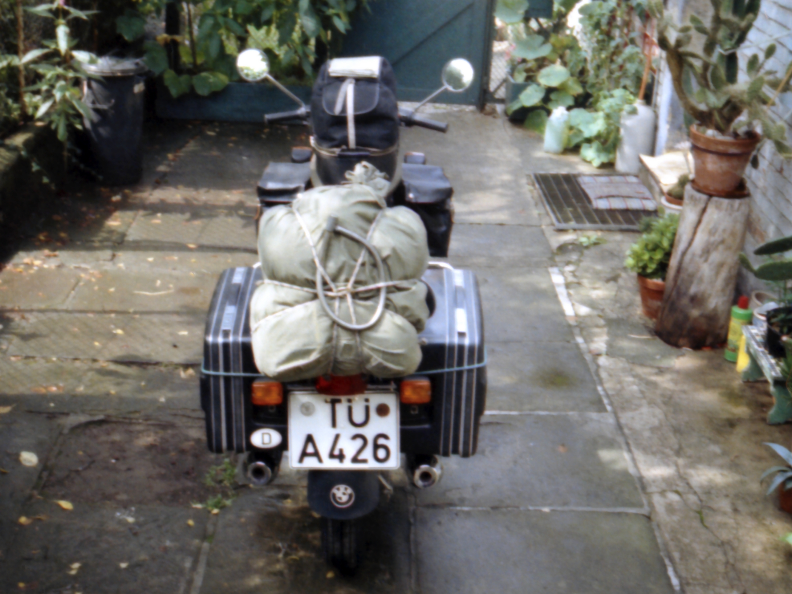 1. Tag: Morgens um sechs wackelt unser Bett wie verrückt. Auch das Haus wankt bedenklich. Was ist das denn? Ach ja, der nahe Zollerngraben lässt grüßen, diesmal allerdings besonders heftig: https://bnn.de/nachrichten/baden-wuertt ... erttemberg Egal, jetzt sind wir wenigstens glockenwach. Draußen warten eine hoch aufgepackte Gummikuh und das große Abenteuer auf uns. Meine fast noch jungfräuliche R 75/7 ist frisch gewartet; sie hat gerade mal 7.000 km auf der Uhr. Ich bin wahrscheinlich der einzige Tübinger Student, der sich damals einen fabrikneuen Boxer zulegte. Ich habe keine reichen Eltern: Eisernes Sparen und gutbezahlte Ferienjobs beim „Daimler“ machten es möglich, unseren gemeinsamen Motorradtraum zu erfüllen. Wir: Das sind meine Frau Sigrid und ich. Mit ihrer Arbeit hat sie unsere Gummikuh wesentlich mitfinanziert. Jetzt, im Spätsommer 1978, ist unsere studentische Reisekasse durch eine gemeinsame, sechs Wochen andauernde Maloche im Sindelfinger Mercedeswerk wieder prall gefüllt.