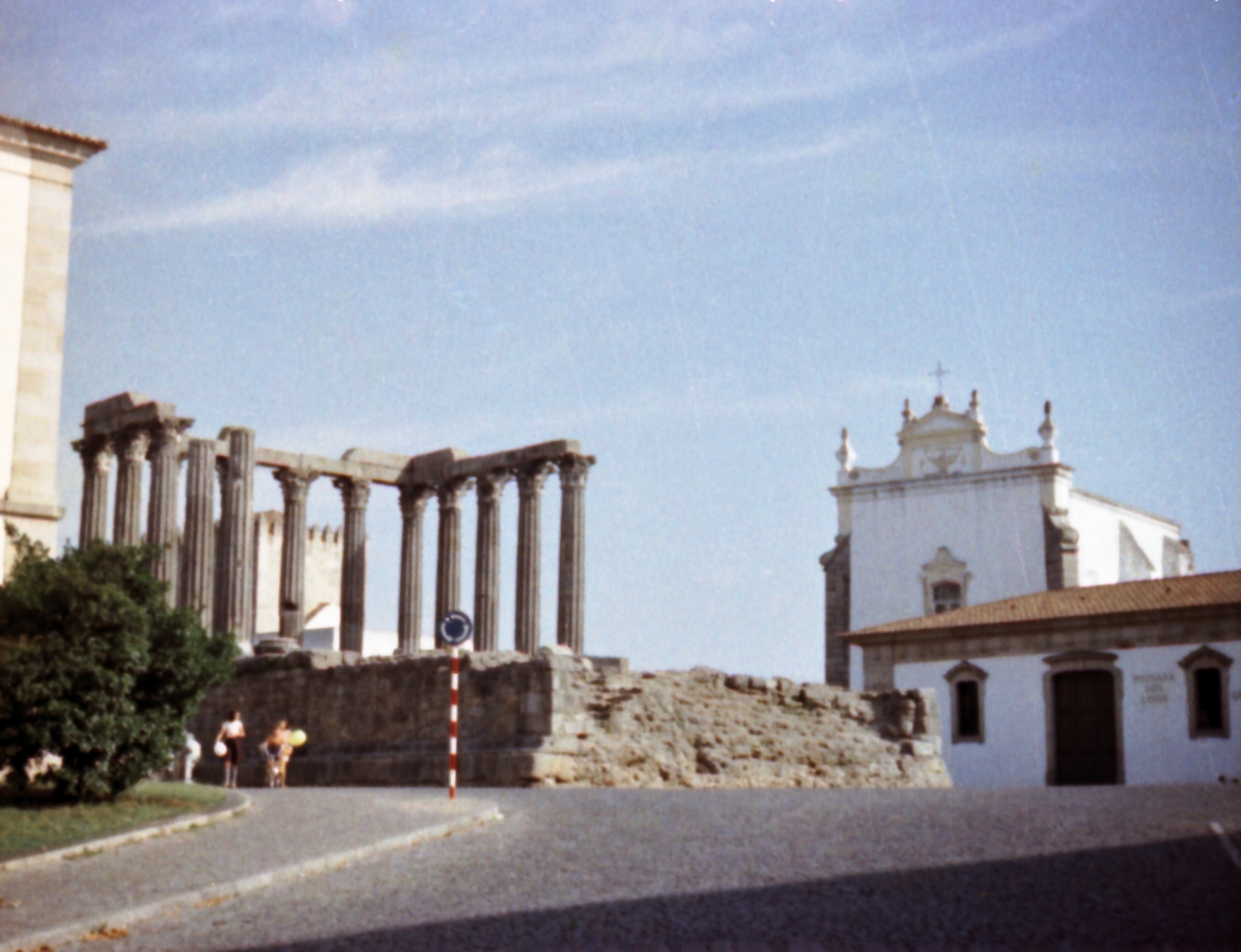 Unser Ziel ist die alte Römerstadt Evora https://de.wikipedia.org/wiki/%C3%89vora, Hauptstadt des Alentejo und Sitz des Erzbischofs. Unser Interesse gilt allerdings mehr dem Heidnischen: Den eindrucksvollen Diana-Tempel wollen wir uns nicht entgehen lassen. Unterwegs fasse ich einen Liter Castrol GTX für meine Gummikuh, die jetzt ab und an seltsame Geräusche produziert und nicht mehr ganz so startwillig ist. Heute weiß ich, dass die vorsintflutlichen Unterbrecherkontakte gern etwas Zuwendung von mir gehabt hätten, aber damals waren das Böhmische Dörfer für mich.