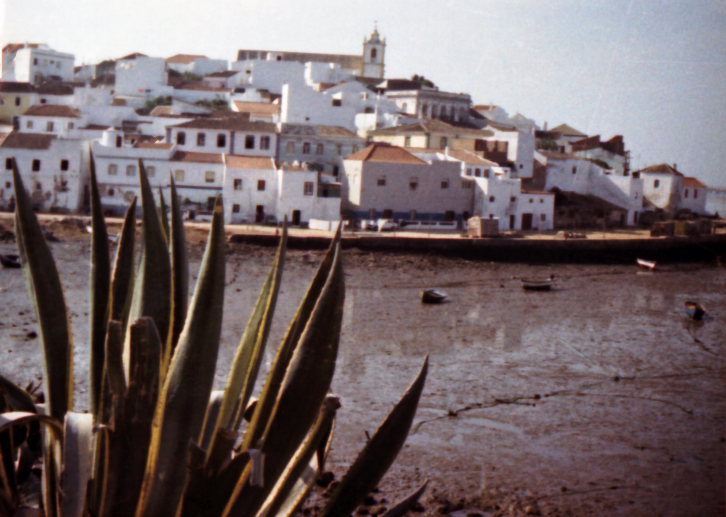 17. Tag: Um der gnadenlos brennenden Sonne zu entkommen, packen wir unsere Kuh früh auf und tuckern entlang der Algarve-Küste nach Osten. Bei Vila Real de San Antonio kaufen wir eine farbige Roséweinflasche und passieren anschließend den Rio Guardiana, der die Grenze zwischen Spanien und Portugal bildet. Wir tun dies nicht auf einer Brücke – die gibt es noch nicht – sondern auf einem altersschwachen Kahn, der bis zum letzten Platz mit PKWs belegt ist. Ich darf erst als letzter auf das Deck und muss zusehen, dass ich die überall umherschwirrenden Fahrgäste nicht niedermache.