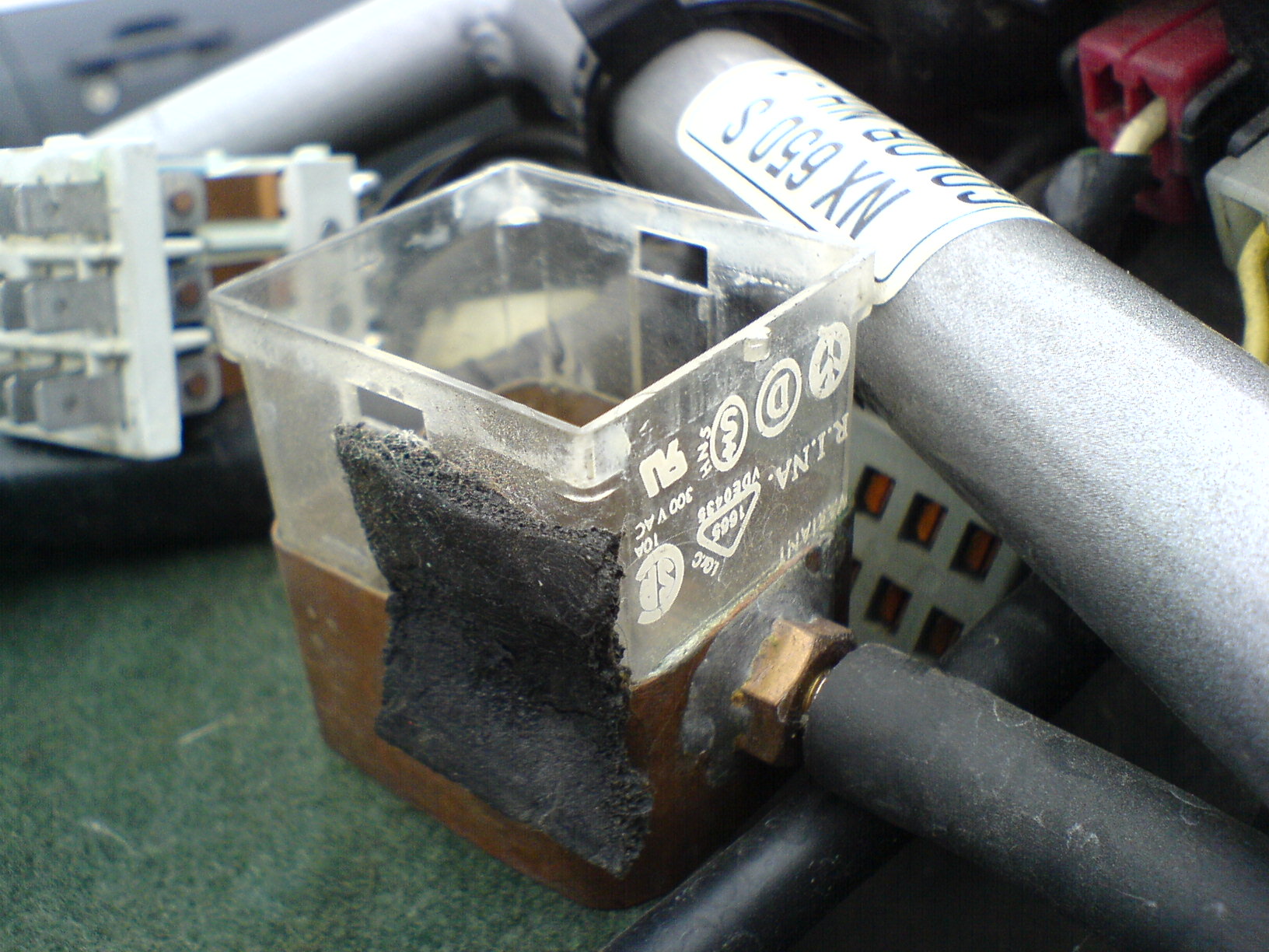 und der eigentliche Schalter (ein umgebautes Relais), der damit betätigt wird, sitzt in einem der geschützten Fächer des Rahmen