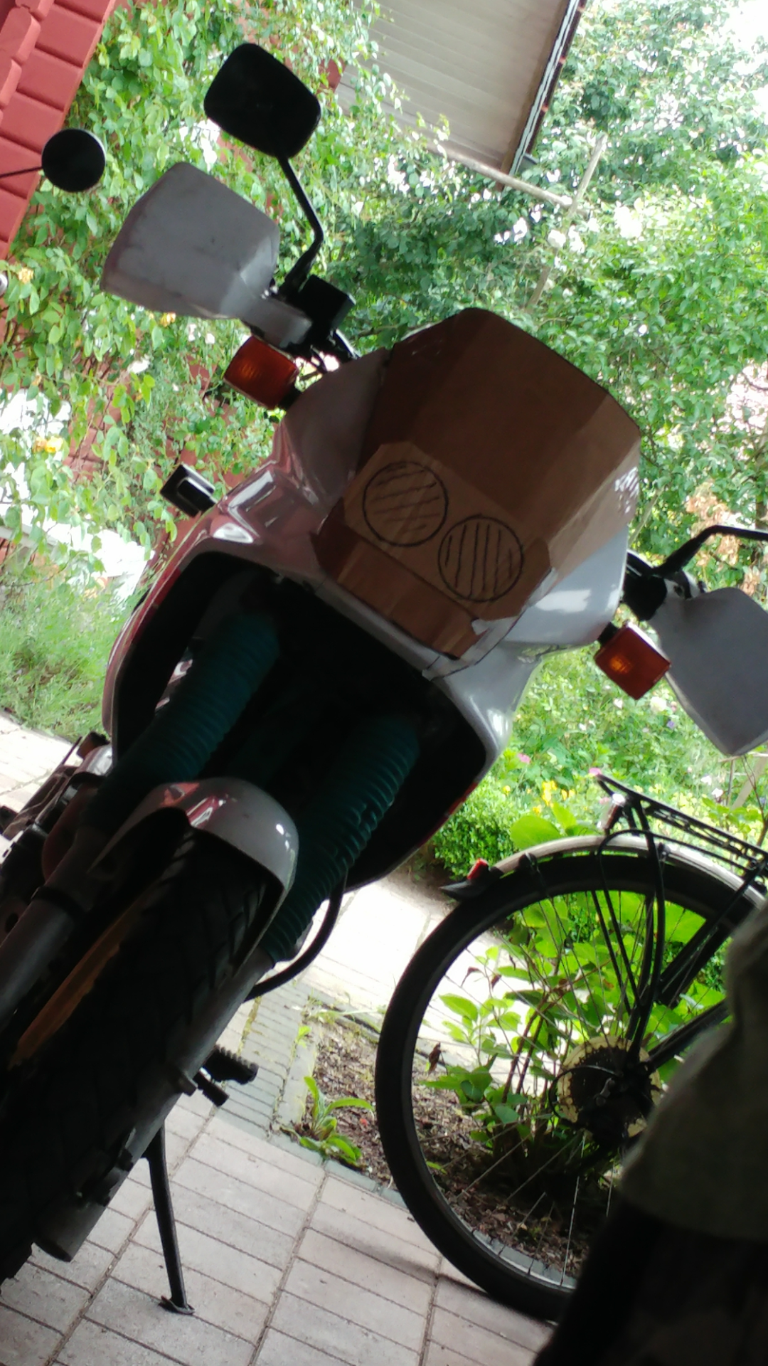Doppelscheinwerfer an der großen Domi hat sich der Peter K (Alpe650) hier aus'm Forum mal selber laminiert.