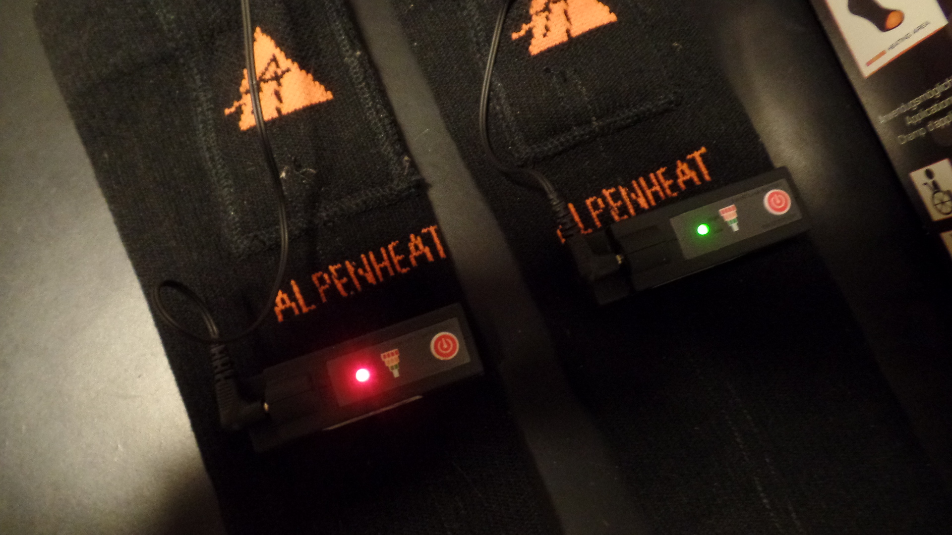 Ende der Sommersaison 2020 verspürte ich dann einen noch stärkeren Drang auch im Winter regelmäßig zu fahren. Gleichzeitig erinnerte ich mich an kalte Füße. So kamen dann die beheizbaren Wollsocken von Alpenheat zu mir. Es werden die Fußspitzen beheizt und die Wärme verteilt sich über den gesamten Fuß - das funktioniert einwandfrei und sehr lange (siehe Bilder). Bei meinen ersten Ausfahrten nutzte ich die höchste Stufe, wo der Akku 5 Stunden laufen soll. Es war bei 3 Grad fast zu warm, aber sehr angenehm. Aus meiner Sicht haben sich die Socken ebenfalls eine Empfehlung verdient.