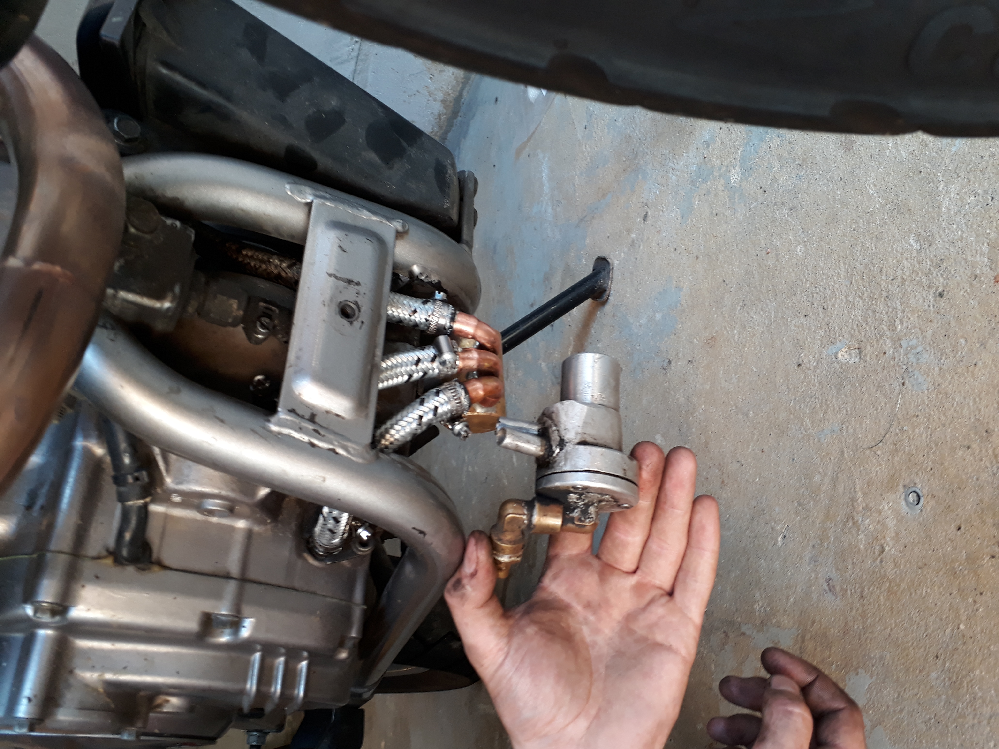 Nichts. Anschlüsse viel zu groß! Da müsste man 12er Ölschlauch drauffrecksen... um dann am Motor und Tank wieder runterreduzieren. Zudem ist das Thermostat riesig, das wird man niemals unsichtbar verbauen können, wenn man es überhaupt irendwo hinbekommt...!! Der Ansporn zu meinem Selbstbau war einen fehlendes 3 Wege-Thermostat um sich den "vierten" Schlauch zu sparen und die Verschlauchung somit gering und ansehnlich zu halten.