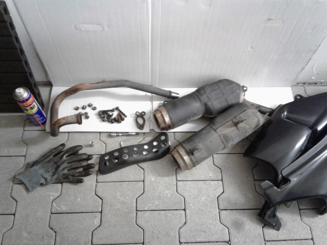 Wer übrigens vergammelte Schrauben am Flansch der Schalldämpfer hat, kann diese mit den Endtopfschrauben tauschen, diese haben pro Seite 2x die gleiche Länge, und sind der Witterung nicht so ausgesetzt.