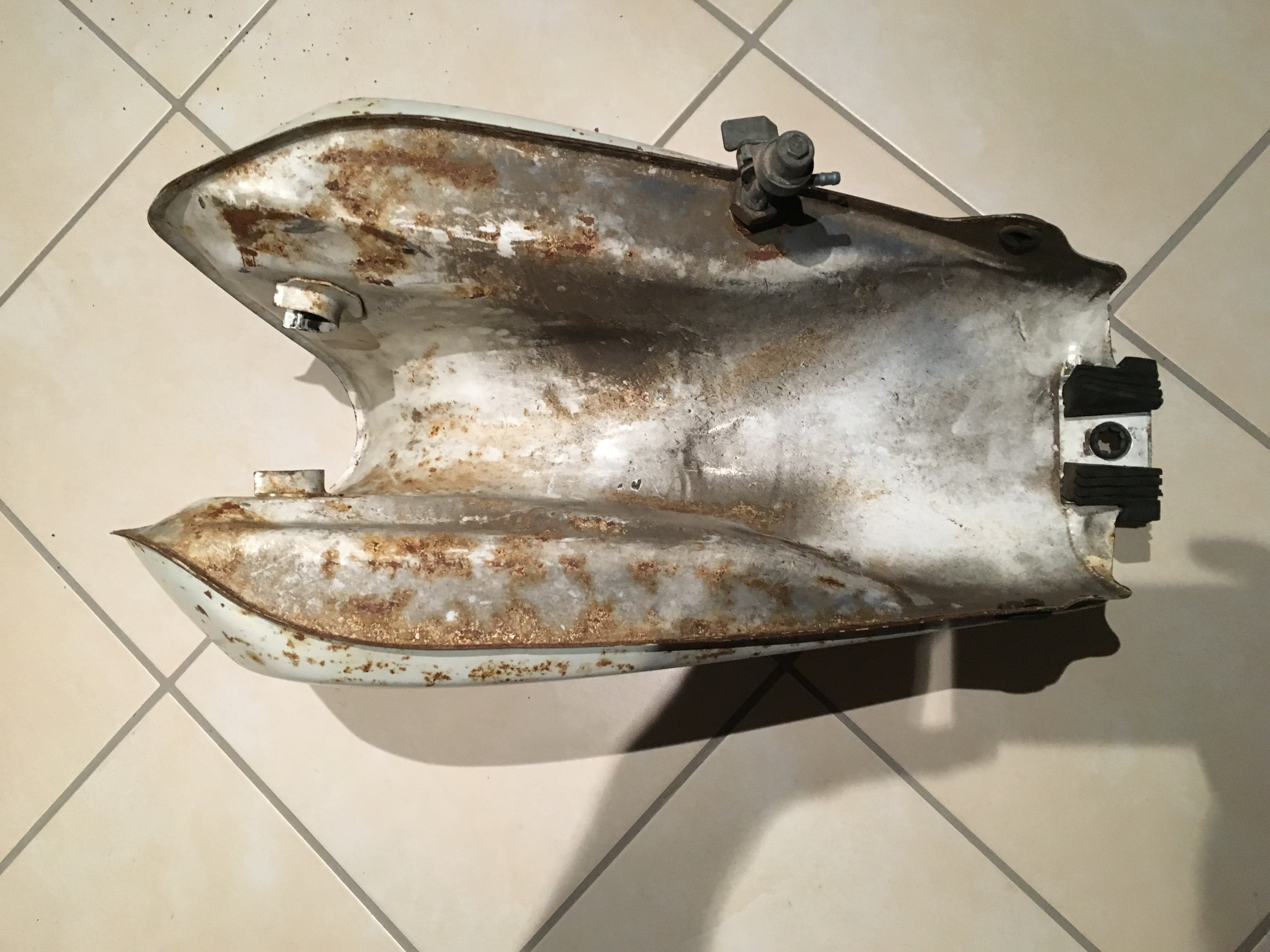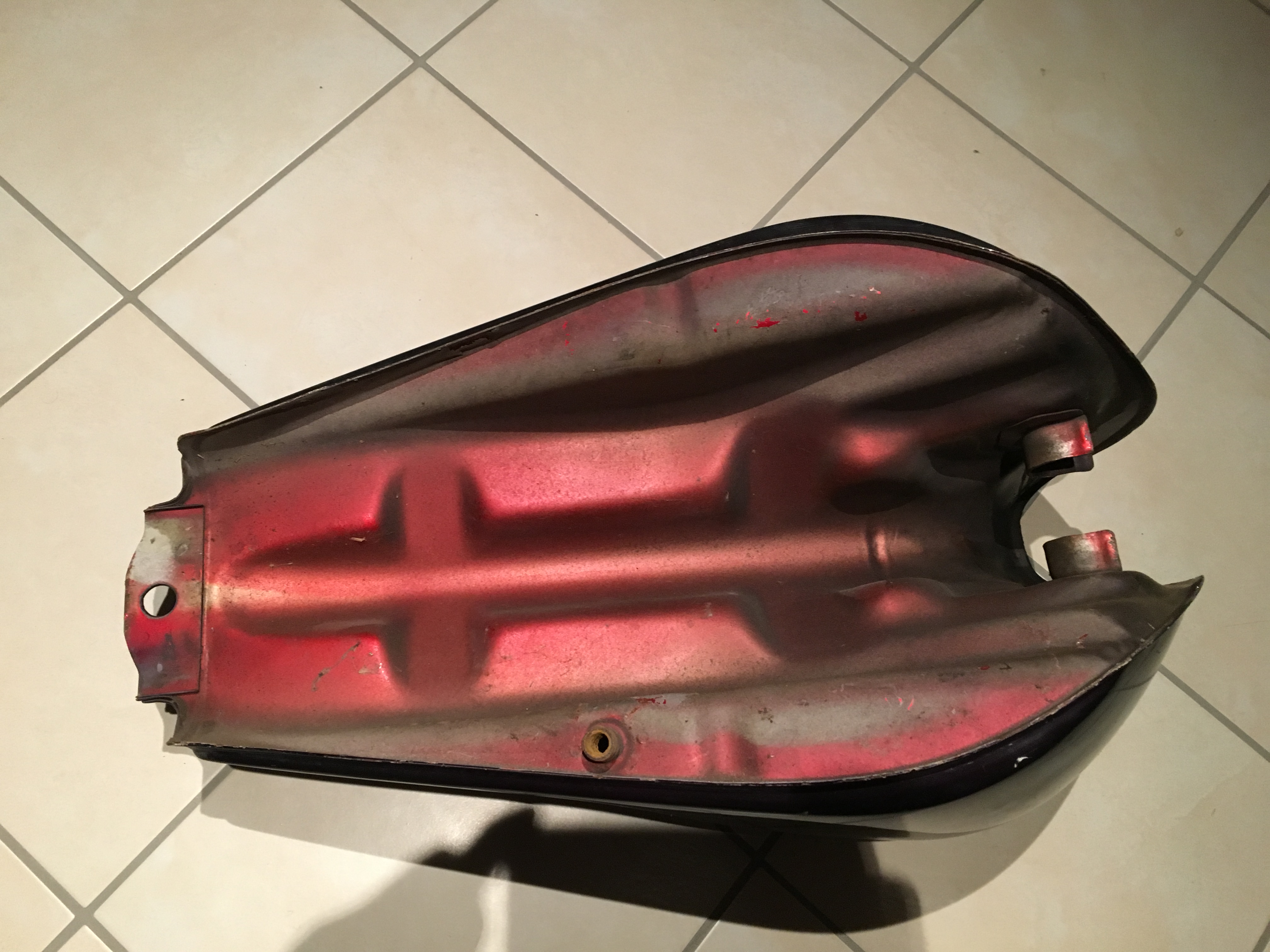 der Miraculix könnte auch stimmen, allerdings finde ich keine Bilder, ich habe nur eins mit einem ähnlichen, aber nicht dem gleichen Tank gefunden (Moto Guzzi Lario von 1980), immerhin scheint sich die Fachwelt bei dem roten einig zu sein, dass es ein Moto Guzzi Tank ist