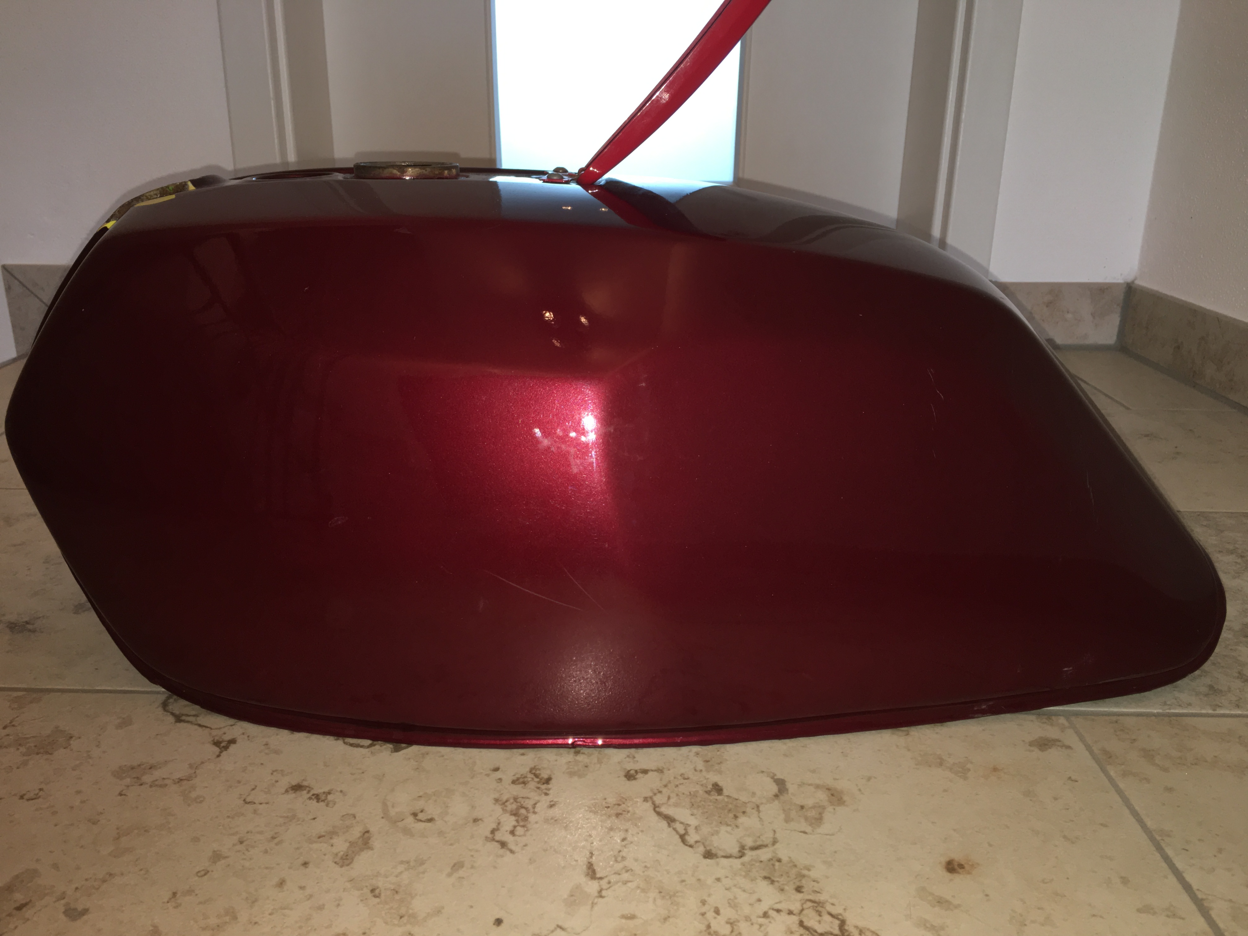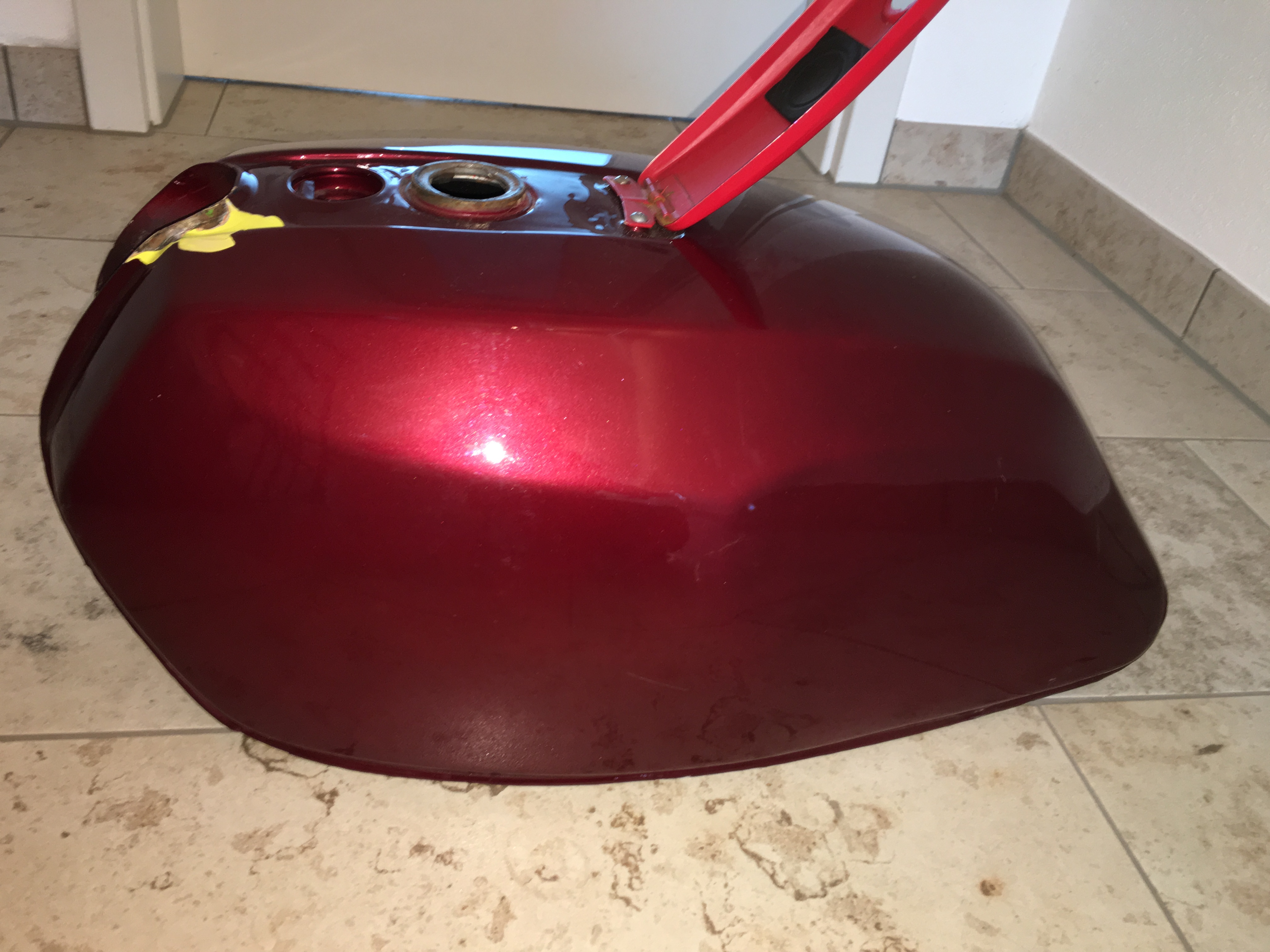 der weinrote kommt mir bissl vor wie der einer Guzzi.. Mit der Tankdeckelklappe.. Vielleicht 1000er MilleMigla, oder 850 LeMans o.ä.