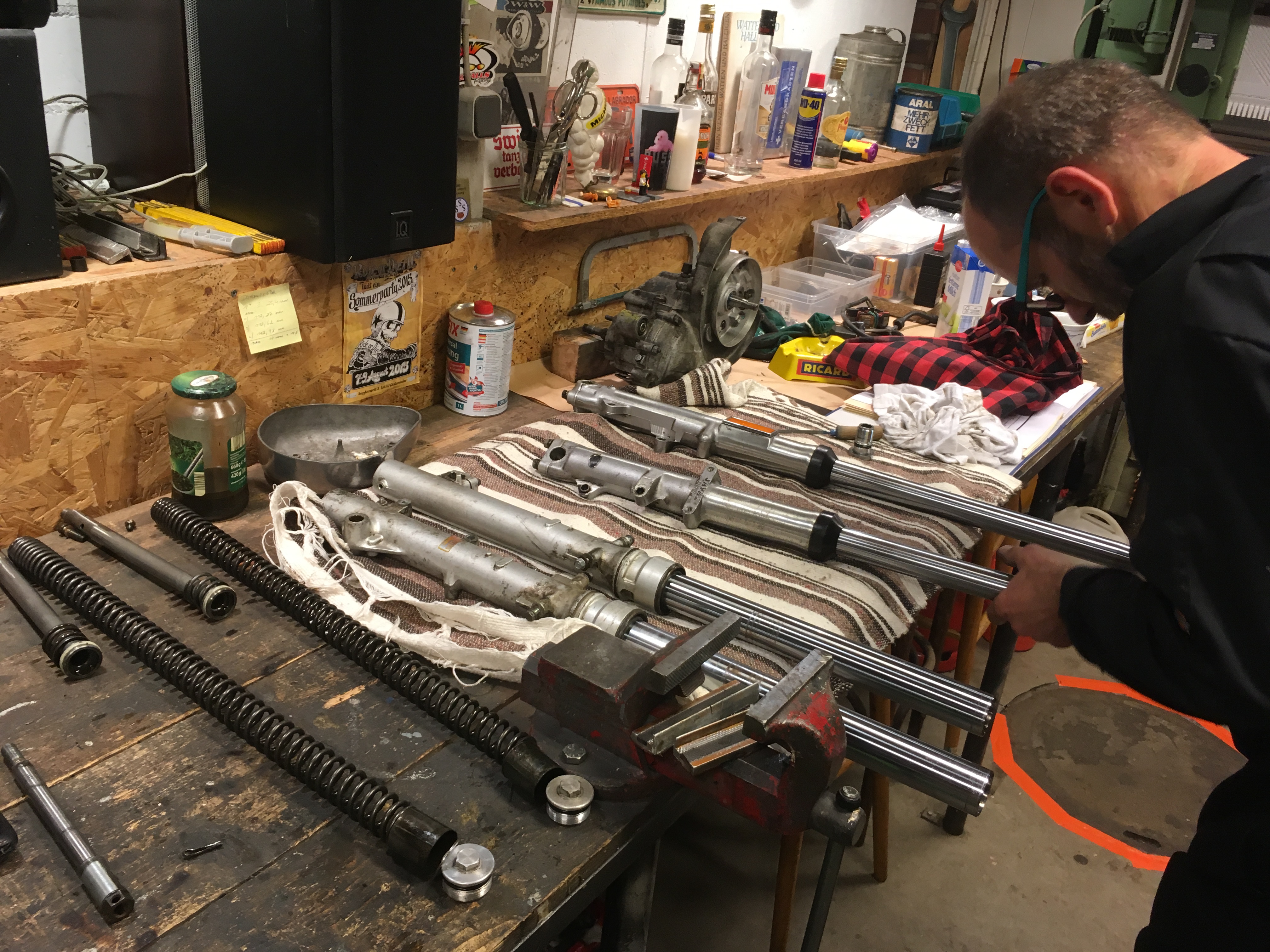 Bevor es an den Rahmen geht wollte ich zunächst "alle" Anbauteile pulvern lassen die ich nachher nur noch verbauen muss. Dh en gros: Fahrwerk!