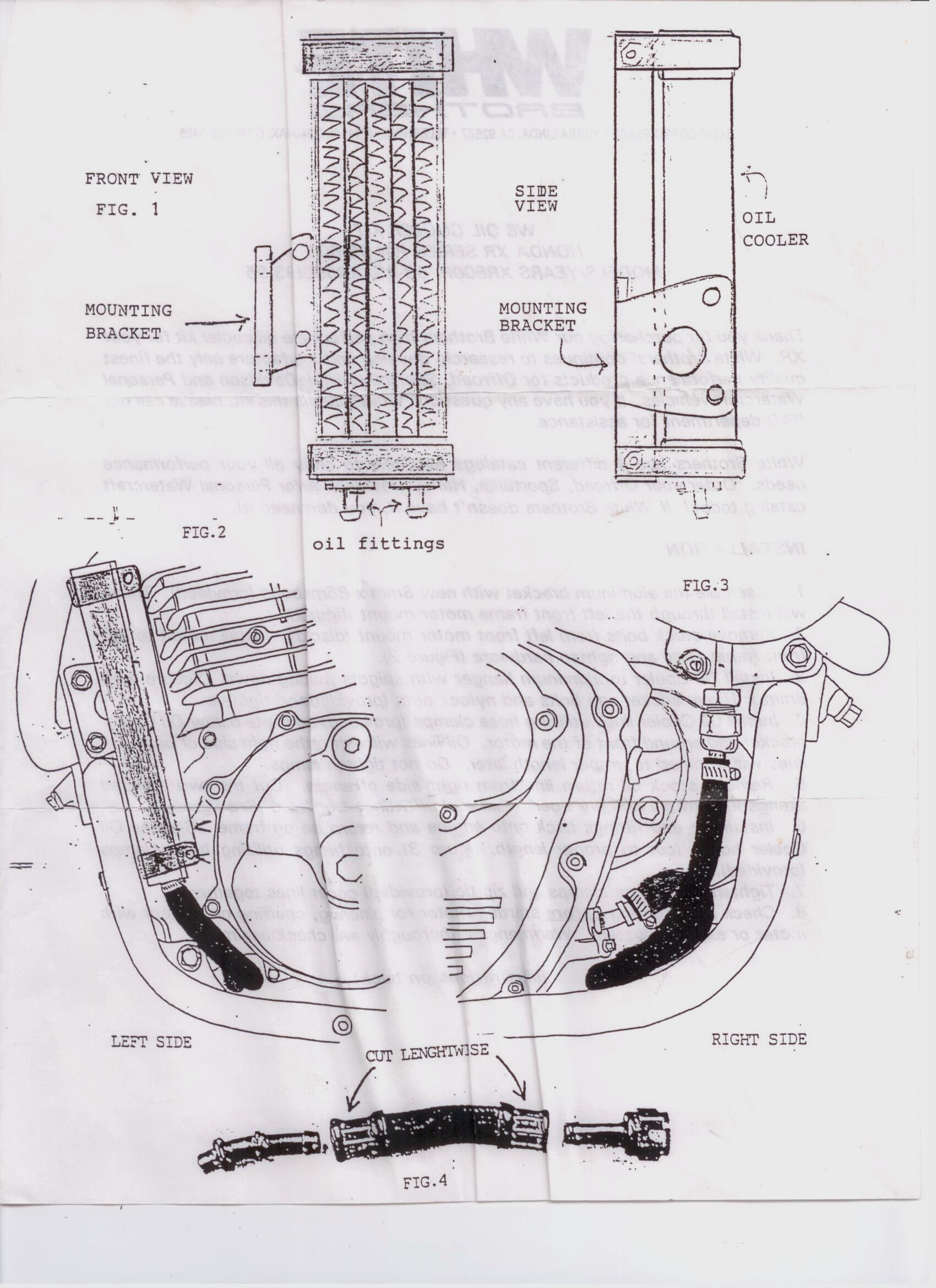 Jagg hat auch mal Ölkühler gebaut, die für die XR 650 verwendet werden konnten. White Brothers hat dafür spezielle Halterungen herstellen lassen. Der Jagg-Kühler wurde auch bei den Harley's eingebaut. So einen hab ich mir mal in der Bucht an Land gezogen und anstelle der Mülltonne eingebaut. Mit der Befestigung musste ich ein wenig tricksen: Eine Verschraubung habe ich zwischen Alu-Bodenblech und Kühler vorgenommen.